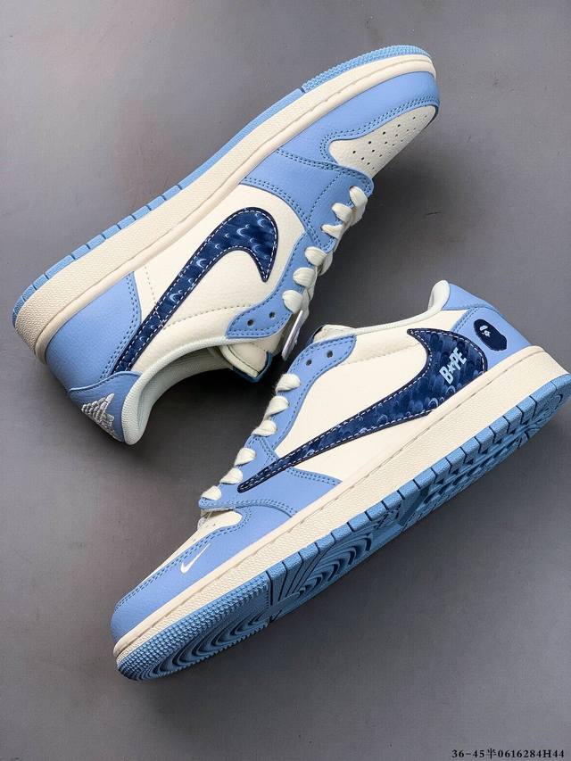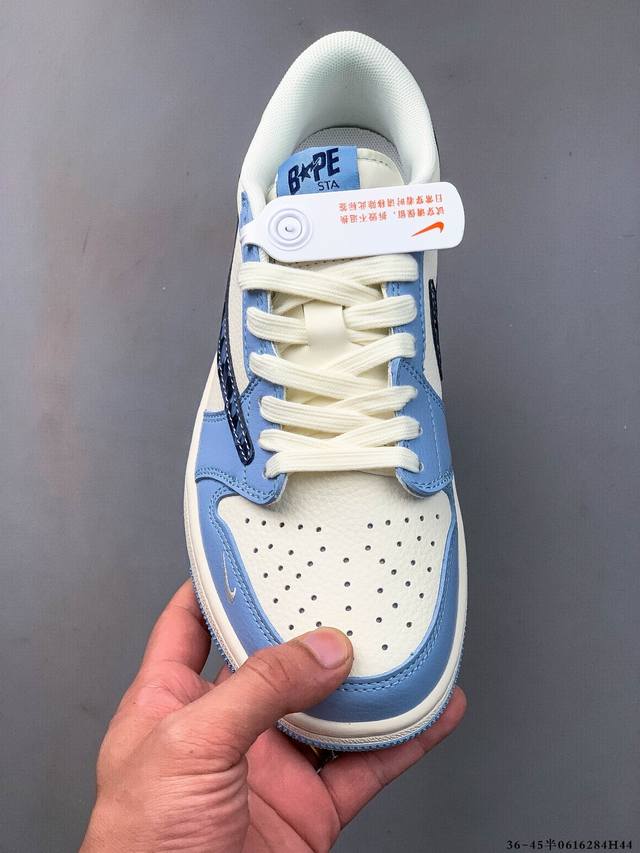 公司级Nike Air Jordan 1 X Travis Scott Aj1倒勾 乔一倒钩 ‘Diy’定制 耐克 低帮文化篮球鞋 完美品质出货 细节如图所示