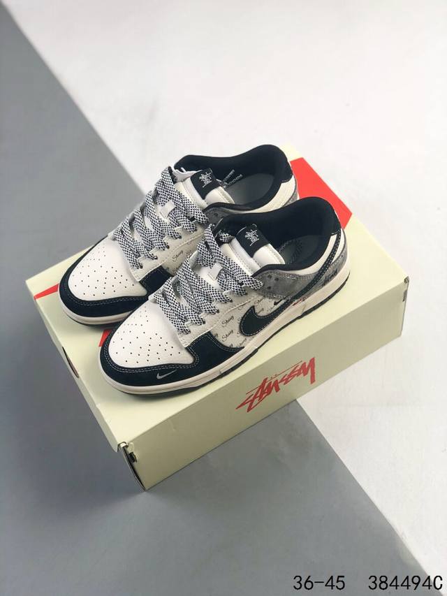 耐克Nike Sb Dunk Low 斯图西联名 复古低帮休闲运动滑板板鞋。采用脚感柔软舒适Zoomair气垫,有效吸收滑板等极限运动在落地时带来的冲击力,为街头运动者们提供更好的保护