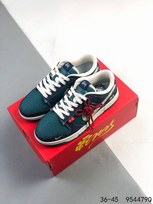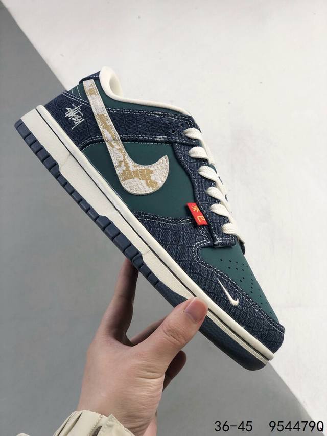 耐克Nike Sb Dunk Low 蛇年 斯图西联名 复古低帮休闲运动滑板板鞋。采用脚感柔软舒适Zoomair气垫,有效吸收滑板等极限运动在落地时带来的冲击力,为街头运动者们提供更好的保护