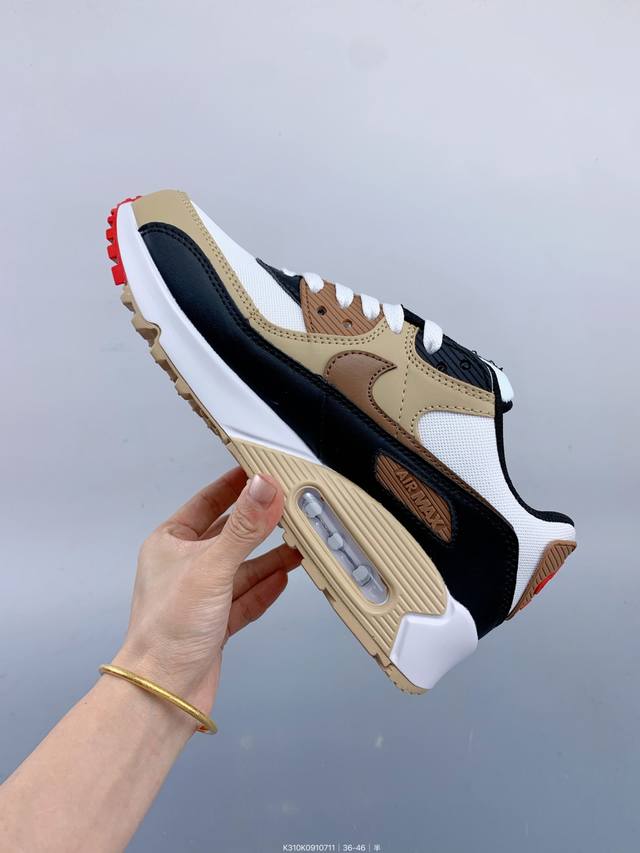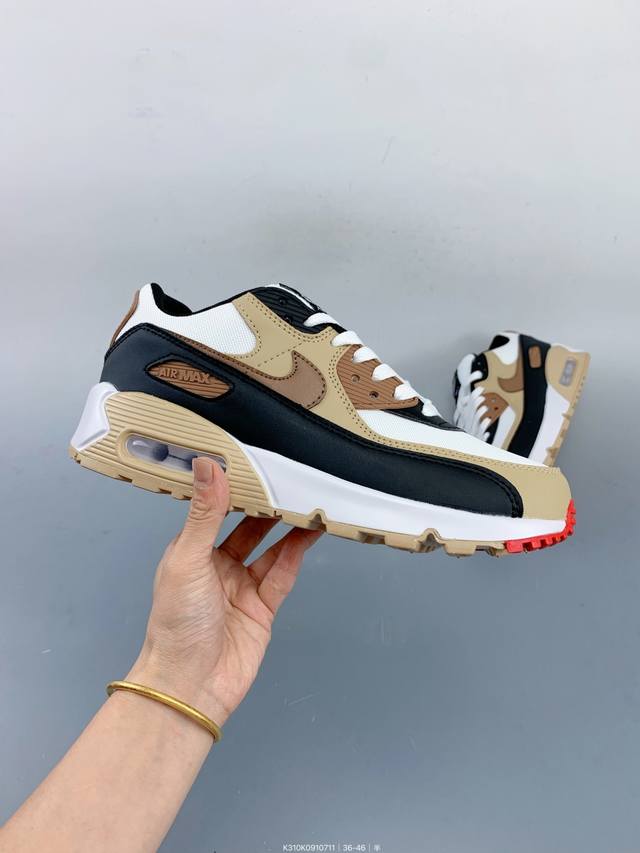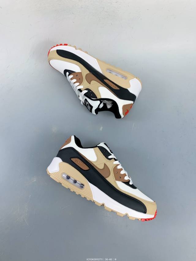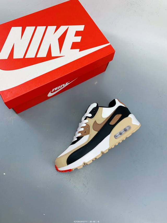 / 公司级耐克Nike Air Max 90 经典复古小气垫缓震跑鞋 鞋面由皮和革织物打造,犀利的条线打造出酷劲十的足视觉效果 网布鞋增面强透气性,穿着为极舒适 经