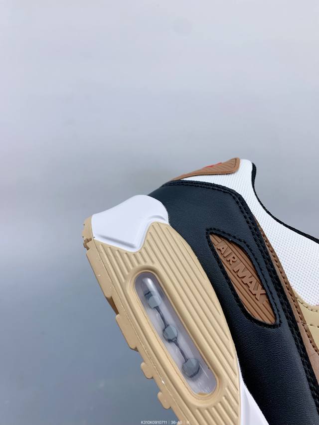 公司级耐克Nike Air Max 90 经典复古小气垫缓震跑鞋 鞋面由皮和革织物打造,犀利的条线打造出酷劲十的足视觉效果 网布鞋增面强透气性,穿着为极舒适 经可典视气垫醒目依旧,而脚感更是十软足弹