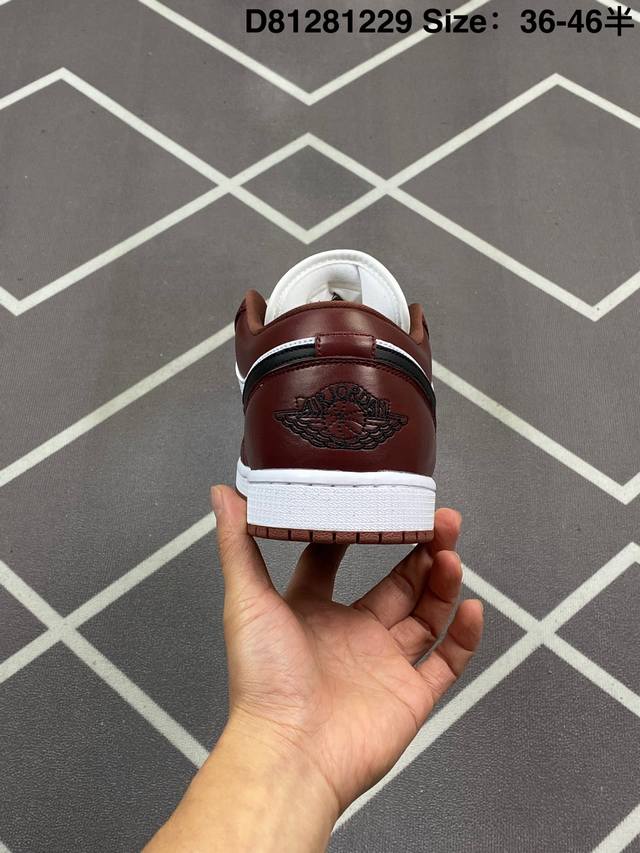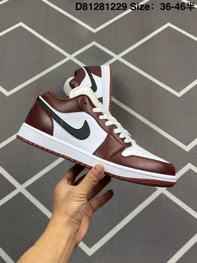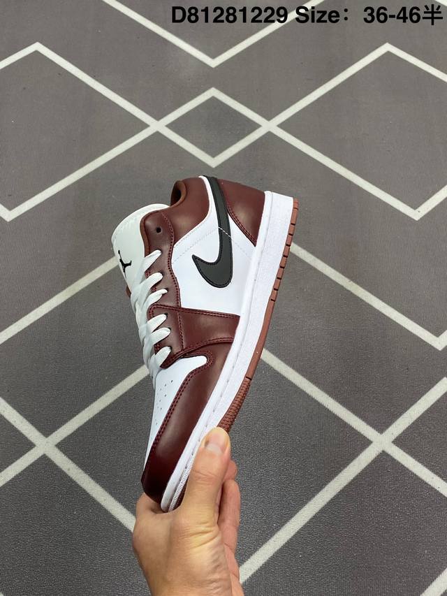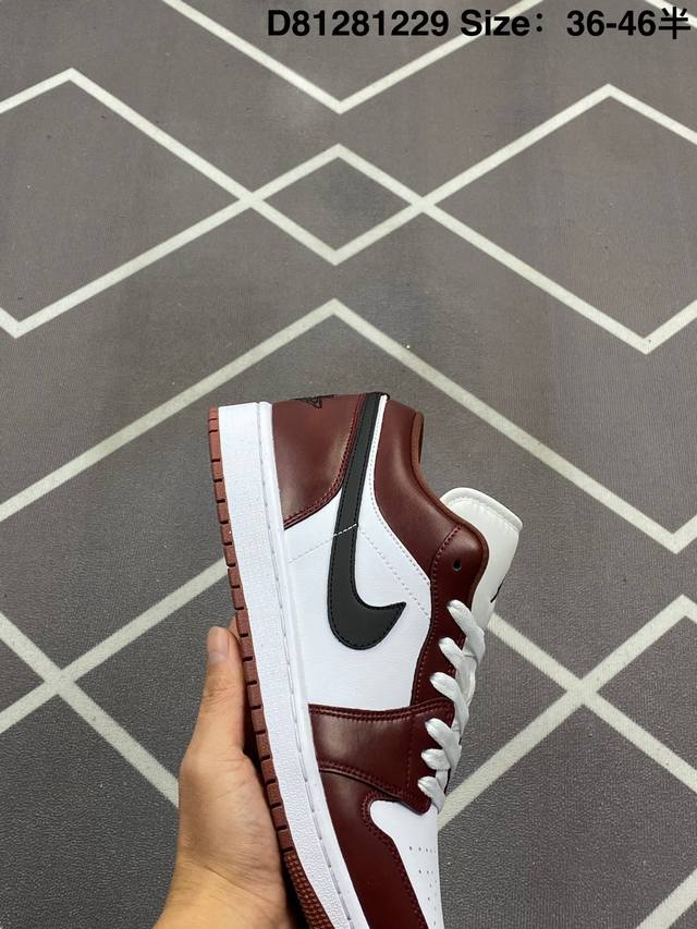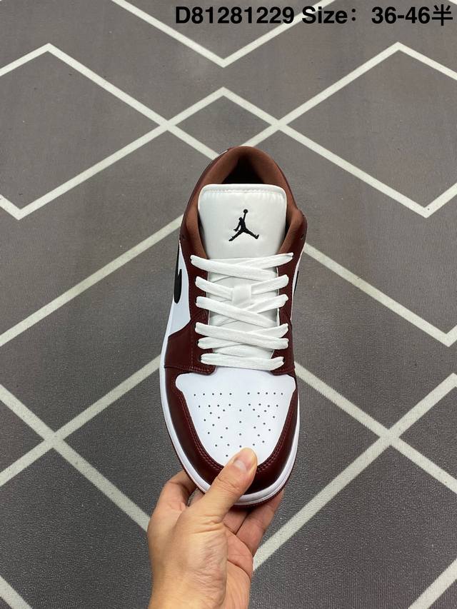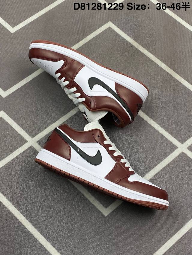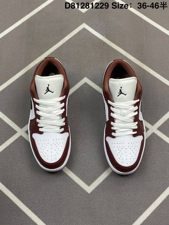 公司级 头层皮 耐克 乔丹Air Jordan 1 Low Aj1 乔1 乔丹1代Aj1 低帮复古文化休闲运动篮球鞋 复古板鞋。该鞋款从 1985 年元年款汲取设计灵感,焕新演绎简约经典外观,让人感到熟悉的同时又颇具新意。缝线细节搭配后跟刺绣 Wings 标志,彰显 Jordan 品牌与众不同的专属格调。皮革鞋面,塑就出众结构感与耐穿性。鞋底加入 Nike Air 缓震技术,造就轻盈缓震脚感,外底融入橡胶,铸就非凡抓地力,塑就日常佳选,后跟饰有 Wings 标志,鞋头打孔设计,泡绵中底。
