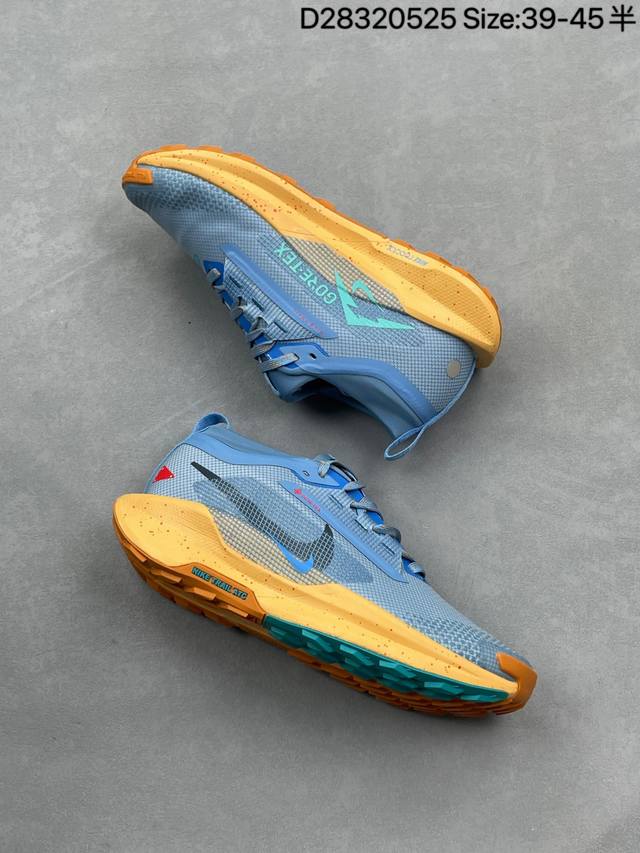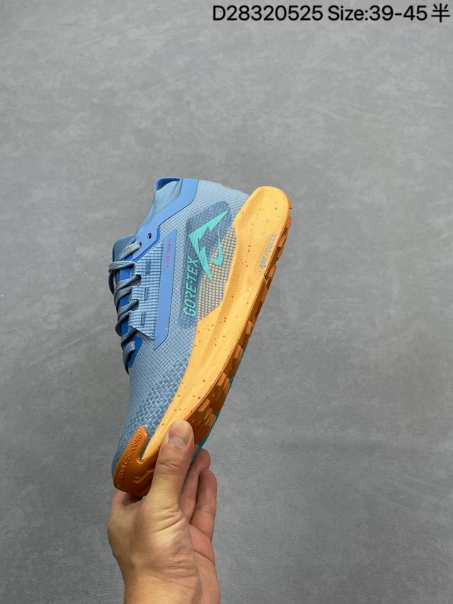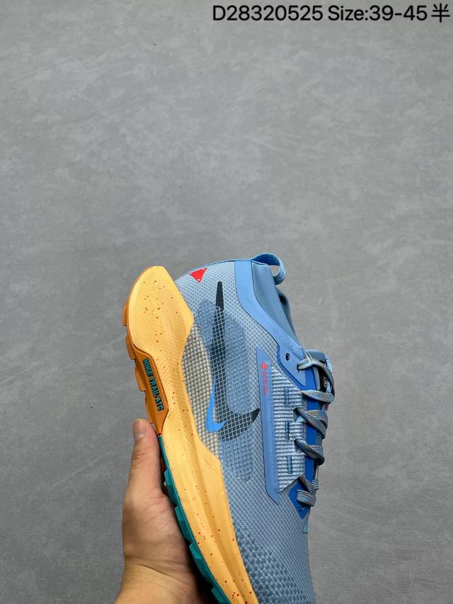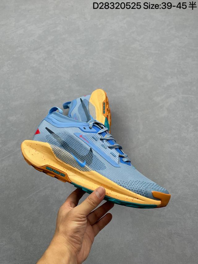 公司级 耐克 Nike pegasustrail5 男款越野跑步鞋夏新款耐克飞马该鞋款搭载出众回弹的 Reactx 泡绵中底 多种地面 皆可轻松驾驭 采用别致设计 上脚潮鞋 踏上 Gr 11 步道 穿越比利牛斯山脉 以海岸灯塔作为向导 从地中海一路畅跑到坎塔布里亚海 外侧饰有红白彩绘条纹图案 灵感源于越野途中路标的颜色 Nike Reactx 泡绵轻盈耐穿 令双足贴近地面 塑就柔软顺畅的非凡迈步体验 鞋头高磨损区域融入橡胶和紧密织物 鞋面采用织物搭配开孔设计 塑就出色透气性 外底精简橡胶用量 可实现公路到
