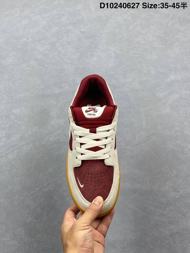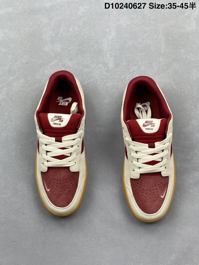 / 公司级 耐克Nike Sb Force 58 运动滑板鞋。这是一款将前沿创新带入街头的单品,它具有硫化杯底,具有出色的耐用性和灵活性。使用柔软皮革织物拼接,在饰