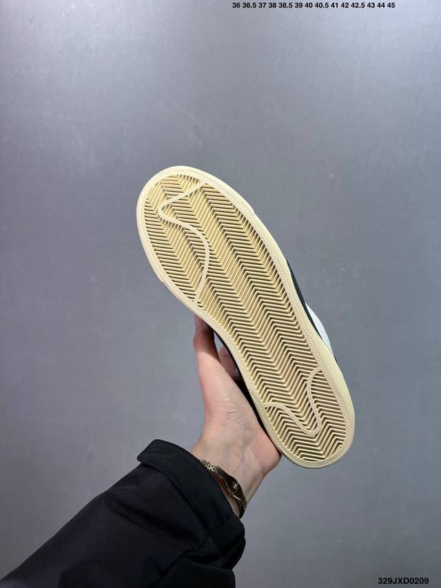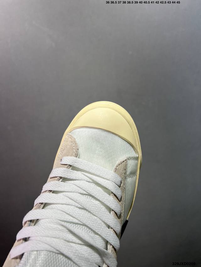 Off-White 和 Nike 联手打造万圣节主题的 Blazer Mid Spooky 系列,包括黑白的 Grim Reepers 和眼前的这款 All Hallows Eve ,更贴近南瓜色调的米黄色鞋面搭配橙色 S