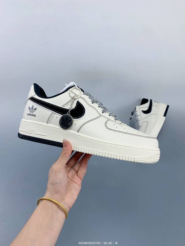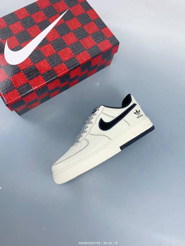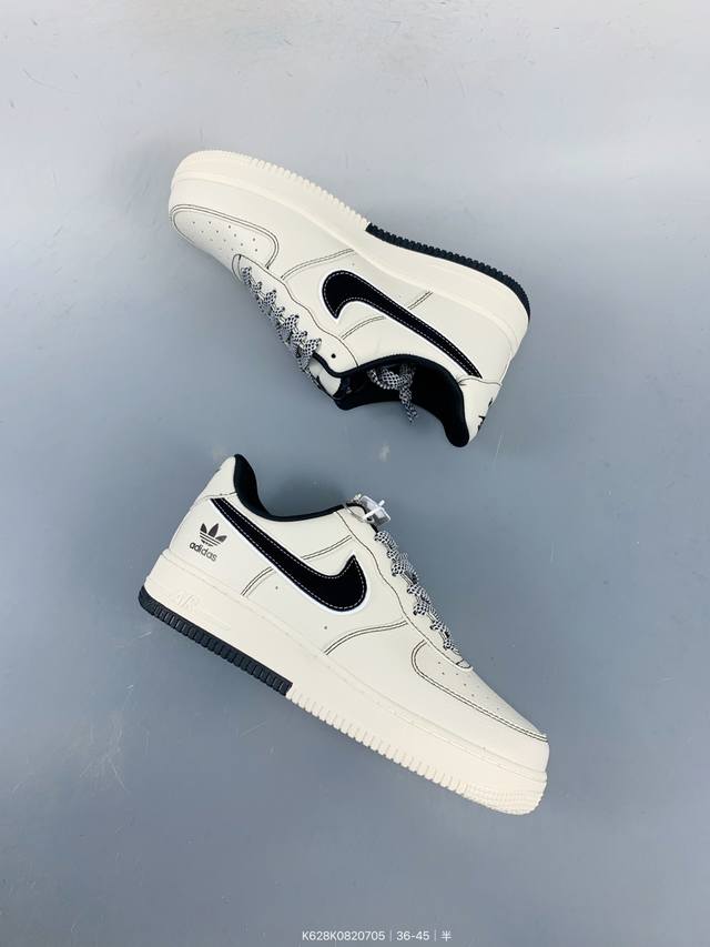 公司级Nike Air Force 1 '07 Low “阿迪达斯联名 黑线双拼底”空军一号 低帮 运动鞋 休闲鞋 折边针车 工艺难度大 原楦头原纸板 原装鞋盒