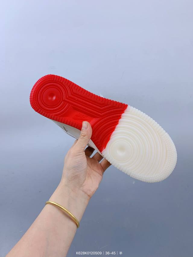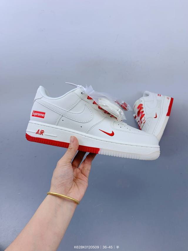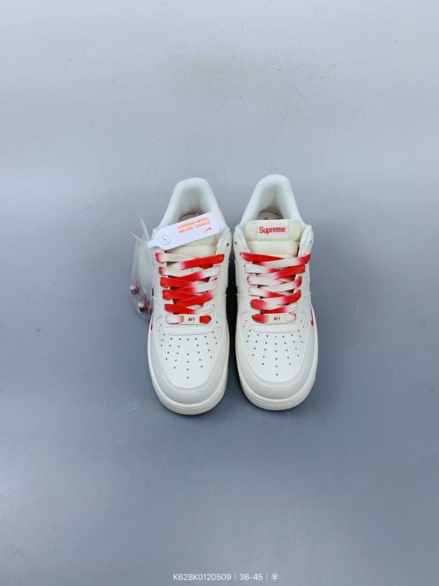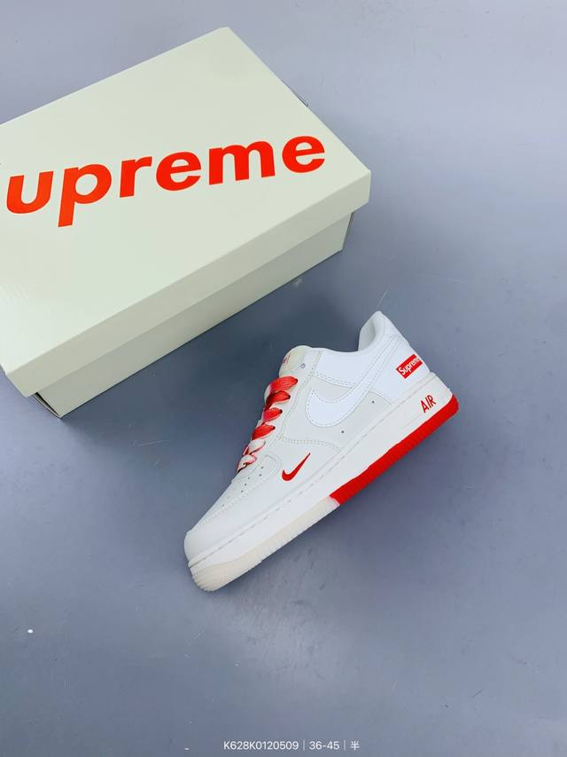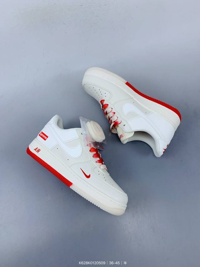 / 公司级Nike Air Force 1 '07 Low “Supreme联名--米红双拼”空军一号 低帮 运动鞋 休闲鞋 折边针车 工艺难度大 原楦头原纸板 原