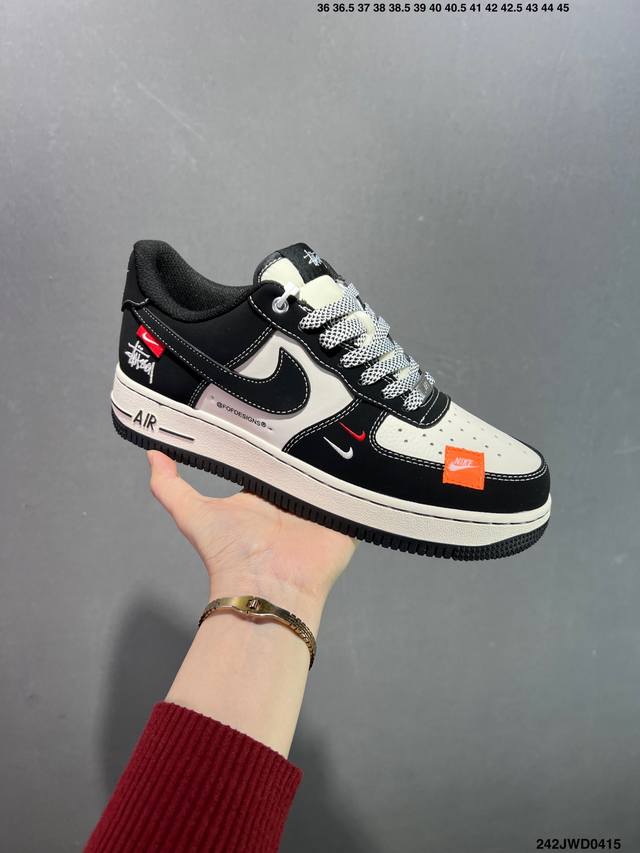 公司级Nike Air Force 7 Low “斯图西联名 米黑双勾红标”空军一号 低帮 运动鞋 休闲鞋 折边针车 工艺难度大 原楦头原纸板 原装鞋盒 定制五金配件 内置全掌气垫 原厂鞋底