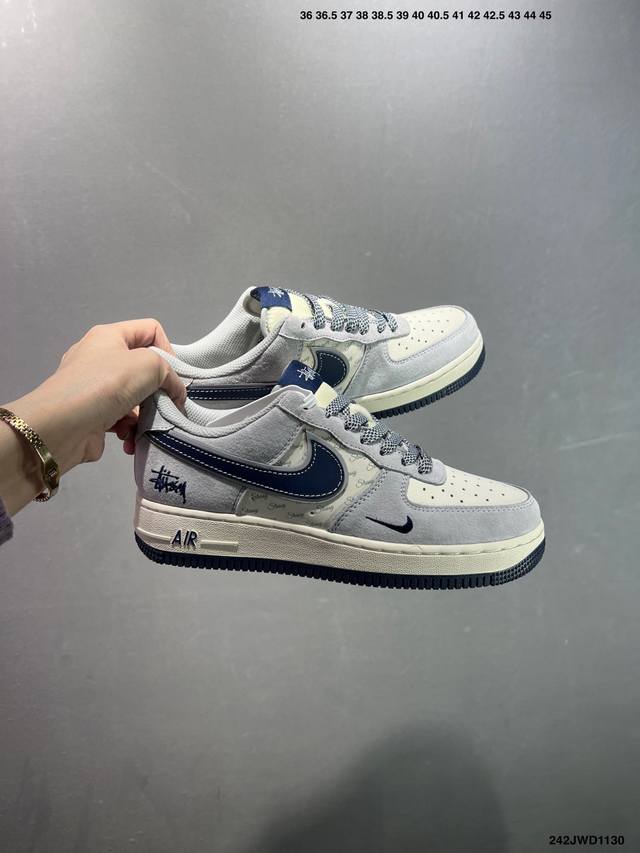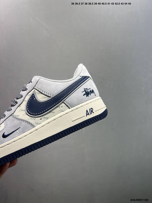 Nike Jordan Air Jordan 1“斯图西联名 米白深蓝” 高端定制 低帮 复古 减震 防滑 耐磨 篮球鞋 定制鞋盒 大厂纯原品质出货 超高清洁度