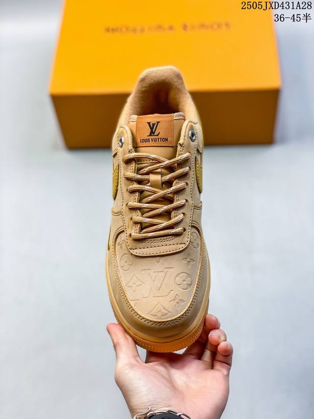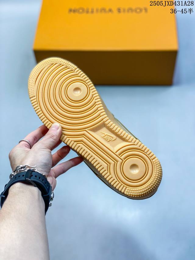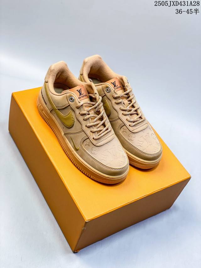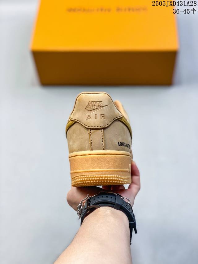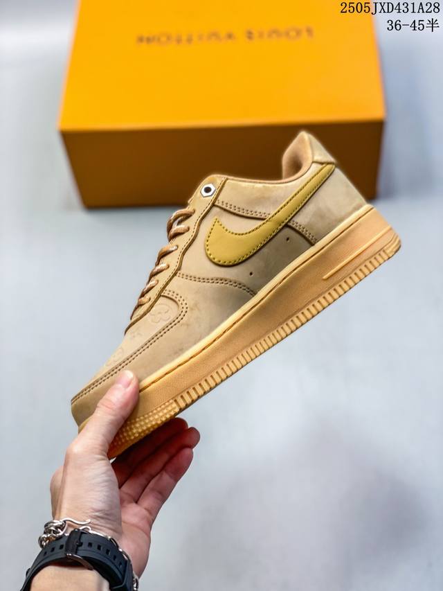 公司级Nike Air Force1 Low Af1原盒包装 Lv联名经典款小麦色空军一号低帮休闲板鞋