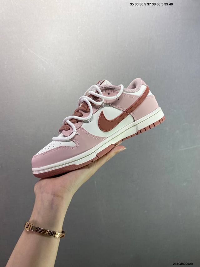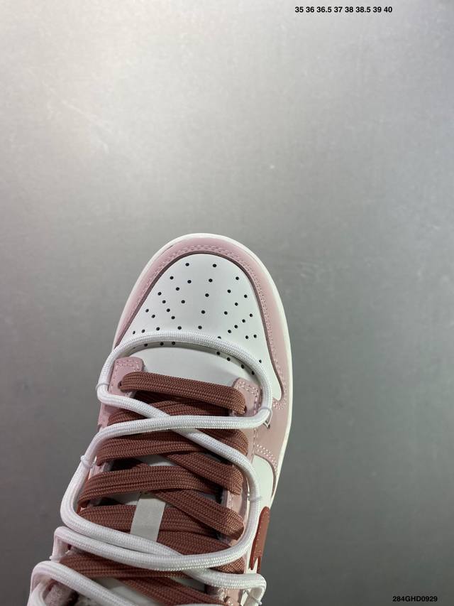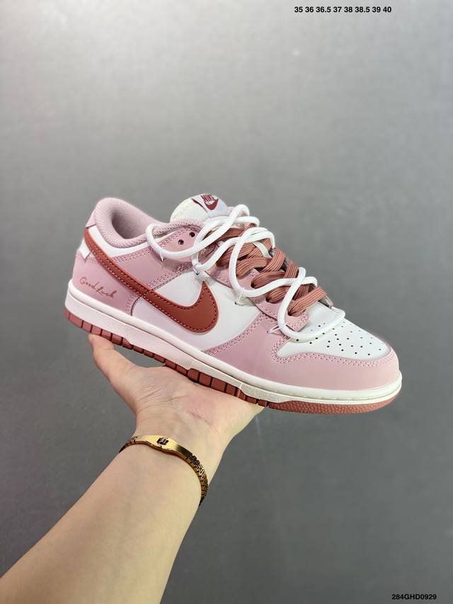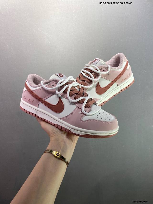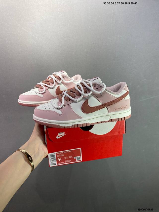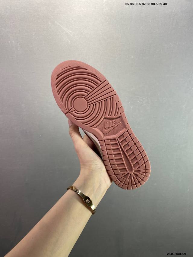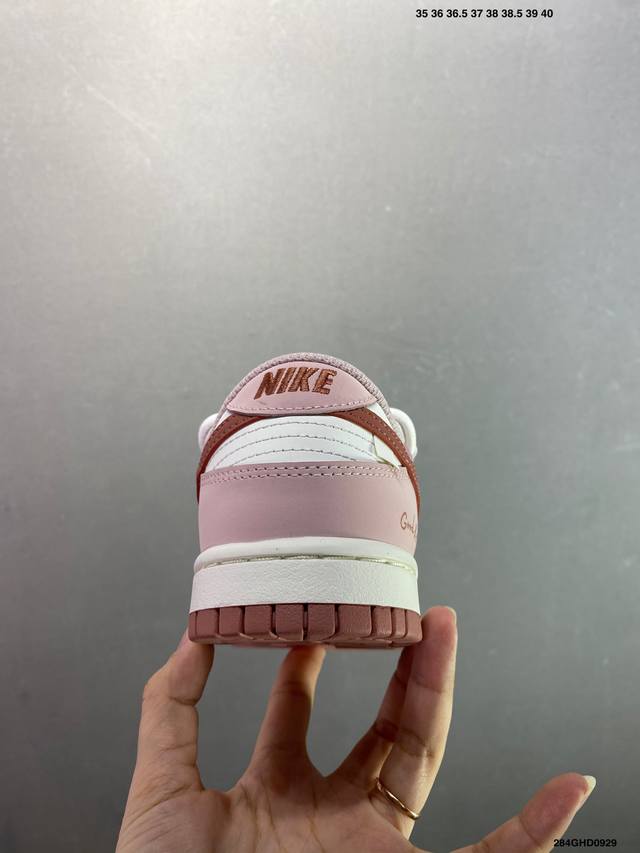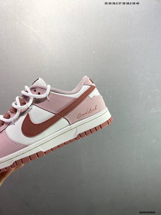 当柔雾粉褪去甜腻,如晨光中初绽的玫瑰,与纯净的珍珠白皮革共同勾勒出优雅廓形。鞋身如马卡龙色盘般柔和,豆沙粉Swoosh似笔锋勾勒的弧线,悄然将街头潮酷基因融入每一寸温柔肌理。后跟压印 Good Luck 幸运签名,是藏在细节里的仪式感,无需刻意张扬,温柔本身就是强大的磁场。