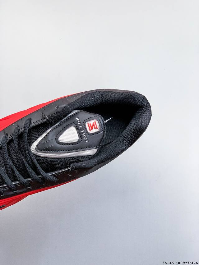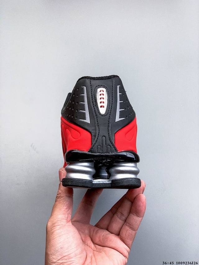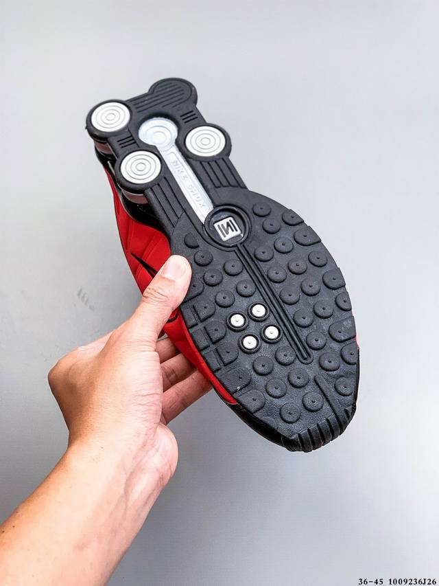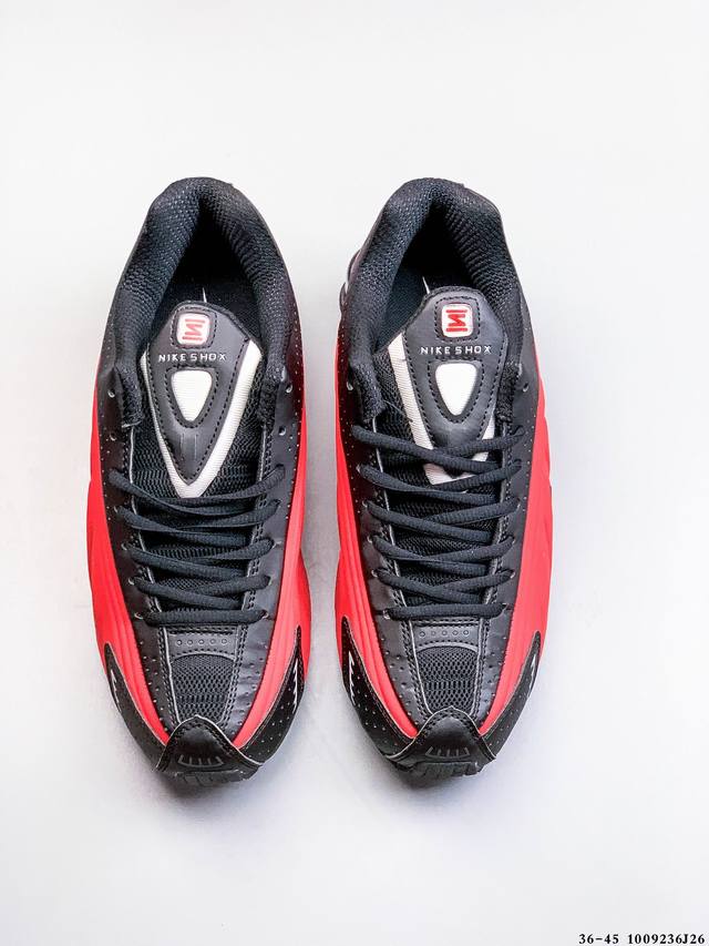 公司级!Nike Shox R4系列 耐克 低帮运动休闲气垫运动鞋 Nike Shox R4男子气柱运动鞋是21世纪早期经典款的焕新鞋款,沿用其未来感设计线条和出众缓震配置,再现元年款风貌。 后跟Nike Shox缓震柱有效分散足底重量,缔造舒适感受,塑就醒目街头风范。 9236J26