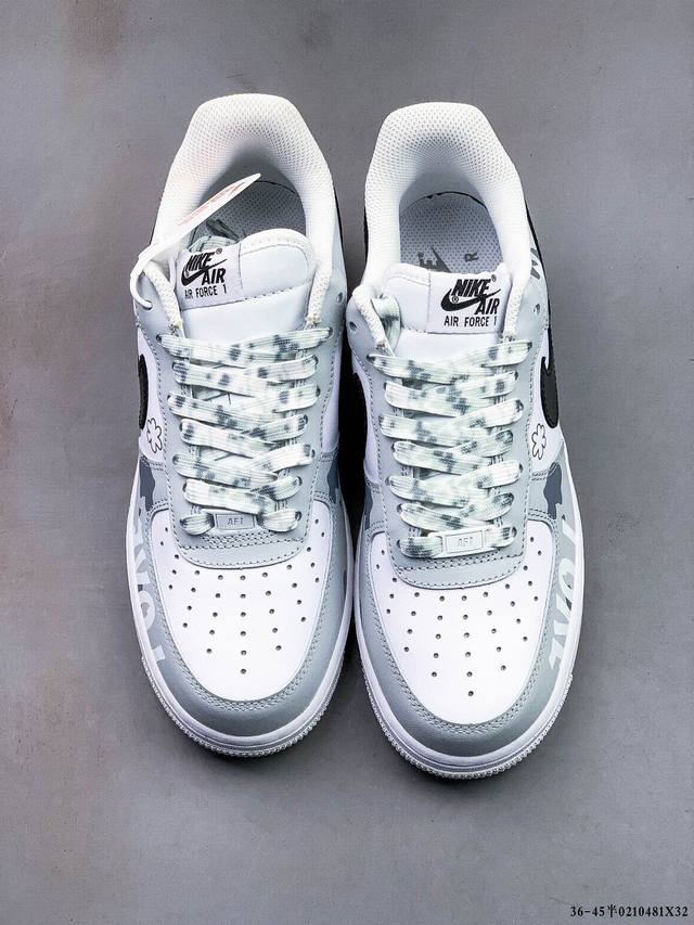 原楦数据纸版,采用硬质优质皮革鞋面材质,内置全掌Air Sole气垫。耐克 Nike Air Force 1 Low 空军一号低帮百搭休闲运动板鞋 021048