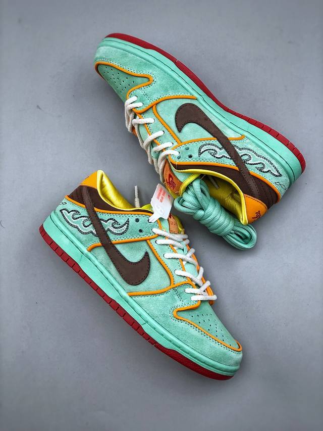 史诗级版本 Nike Sb Dunk Low Tourmaline 黑人月 低帮休闲滑板鞋 Hf3058-300 #鞋面以充满活力的碧玺绿为主色调,辅以君主橙色的滚边、巴洛克棕色的点缀以及引人注目的红色外底,形成了鲜明的对比。鞋垫与随鞋附赠的黄色手帕,还原当年西部牛仔景象,并写着 “What's Going To Happen Is Going To Happen”,还原阳光普照西部的风貌。尺码:36-46 半