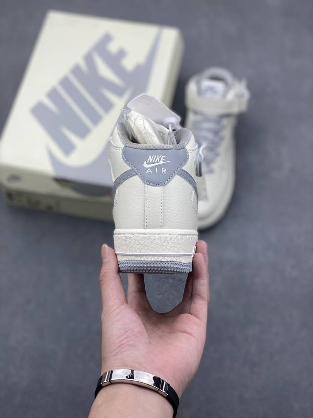 / 小红书爆款 公司级 Nike Air Force 1 Mid '07 “米银灰”配色中帮空军一号休闲板鞋 定制皮料 原楦原纸板 纯正空军版型 高清洁度 内置全掌