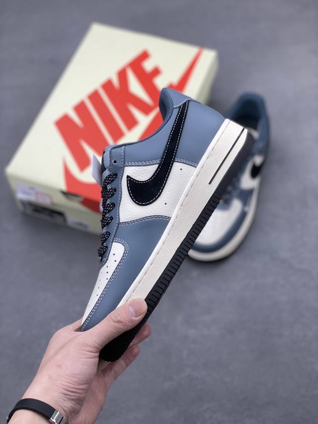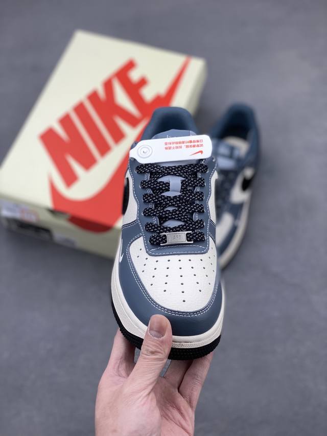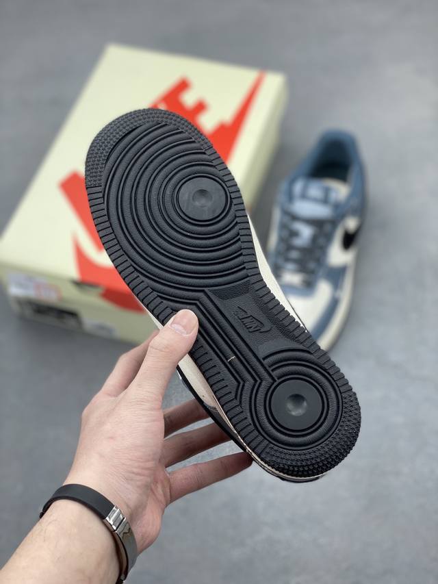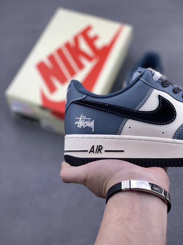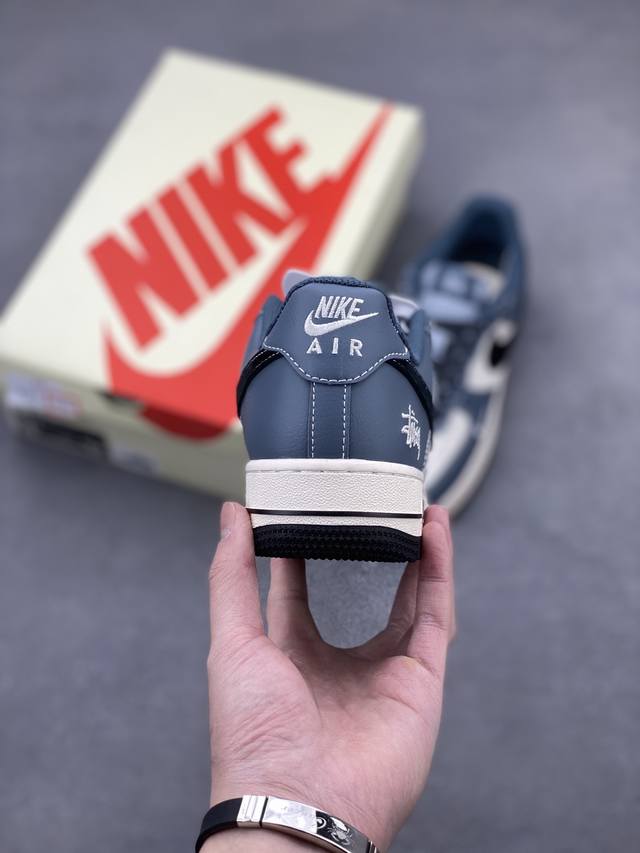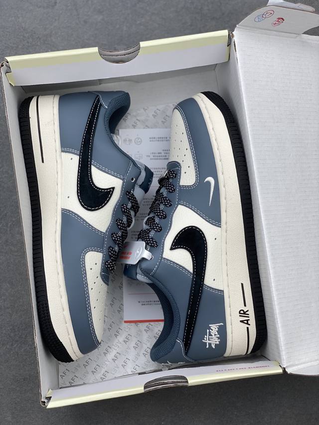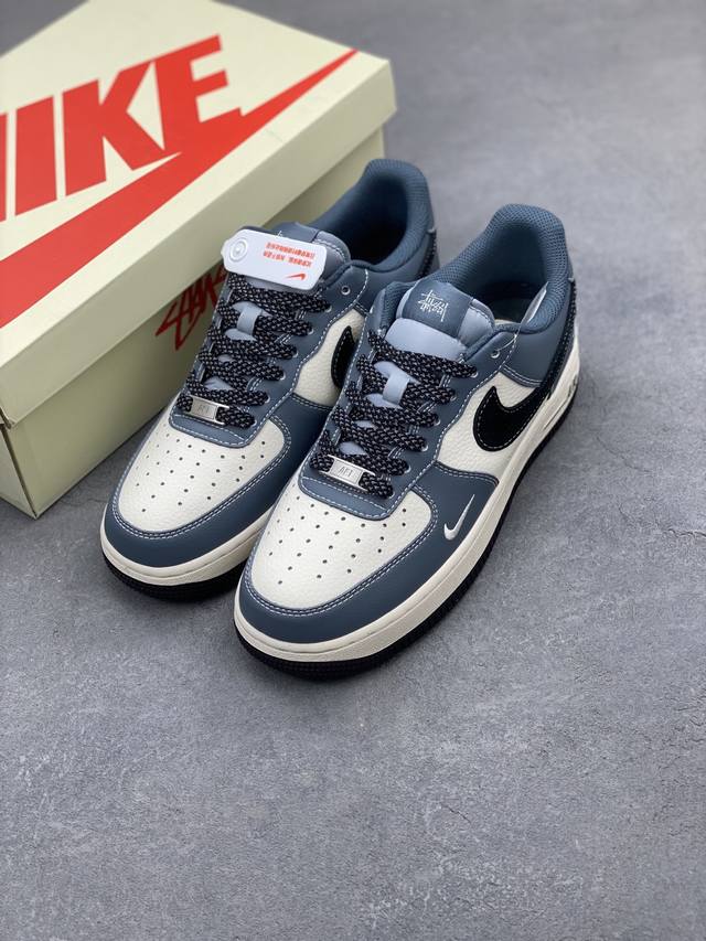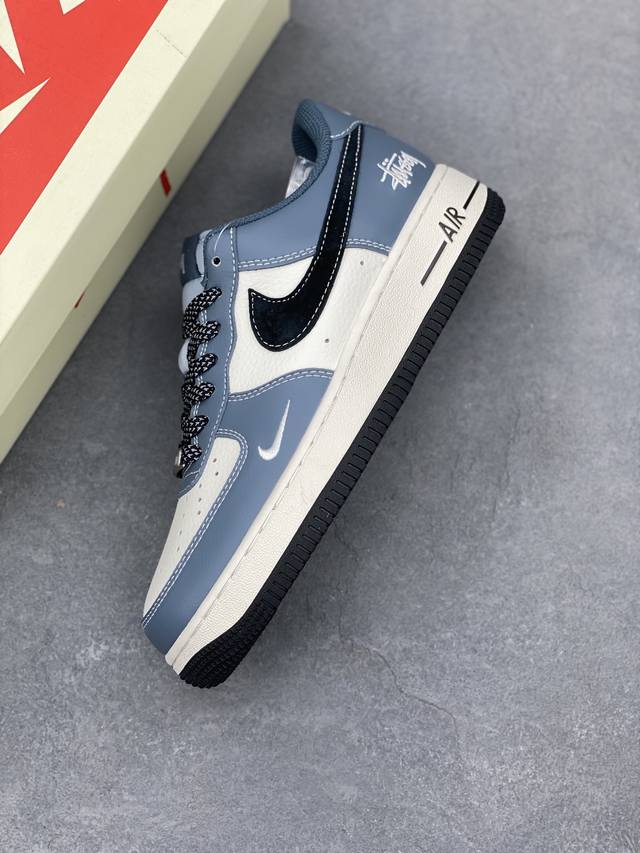海外限量发售!公司级Nike Air Force 1 '07 Low “斯图西联名--亮蓝黑勾”空军一号 低帮 运动鞋 休闲鞋 折边针车 工艺难度大 原楦头原纸板 原装鞋盒 定制五金配件 内置全掌气垫 原厂鞋底