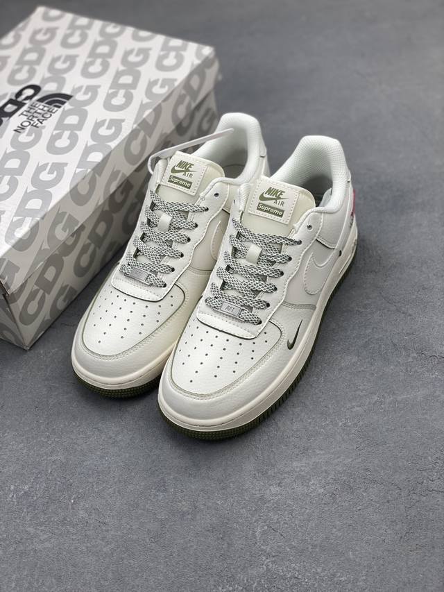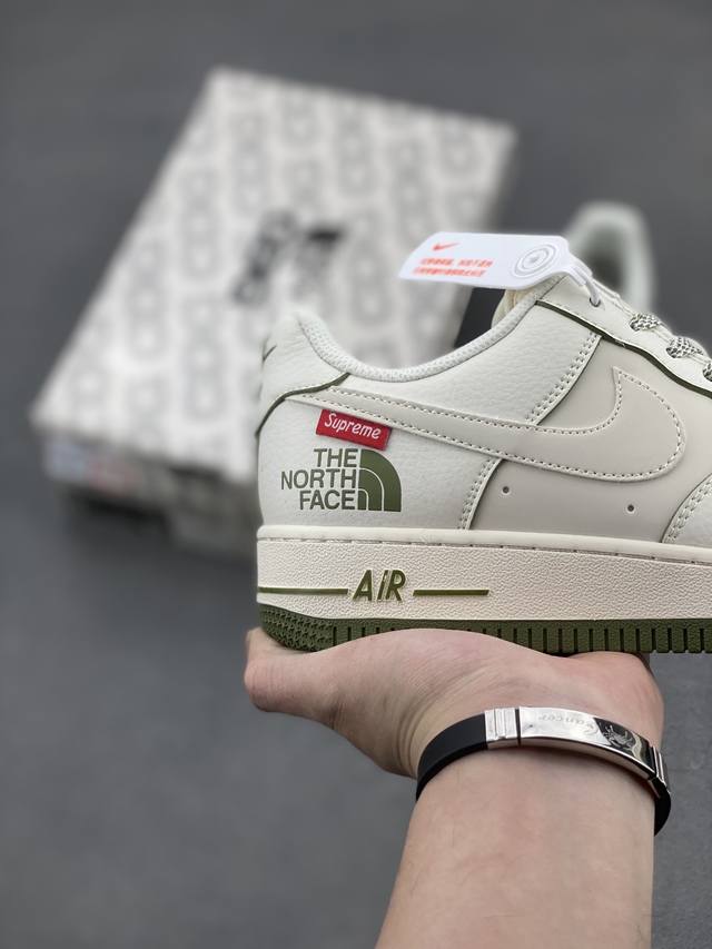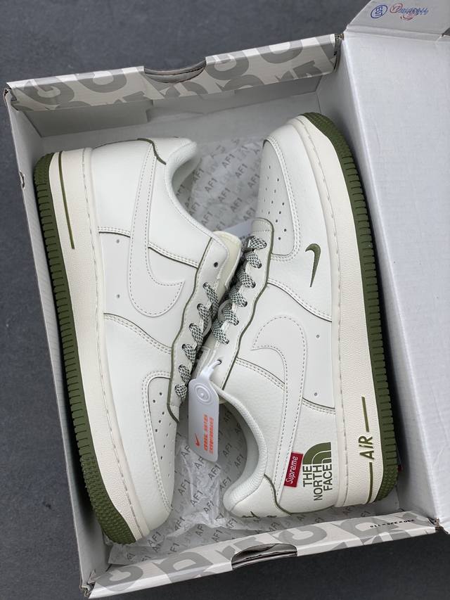 海外限量发售!公司级Nike Air Force 1 '07 Low “Supreme北面联名--米白透心绿”空军一号 低帮 运动鞋 休闲鞋 折边针车 工艺难度大 原楦头原纸板 原装鞋盒 定制五金配件 内置全掌气垫 原厂鞋底