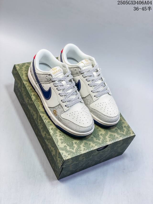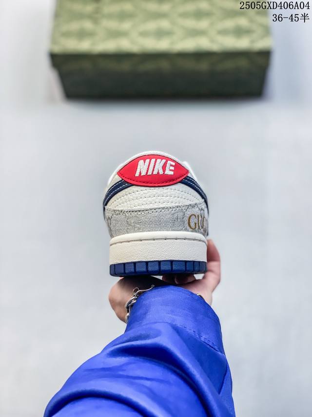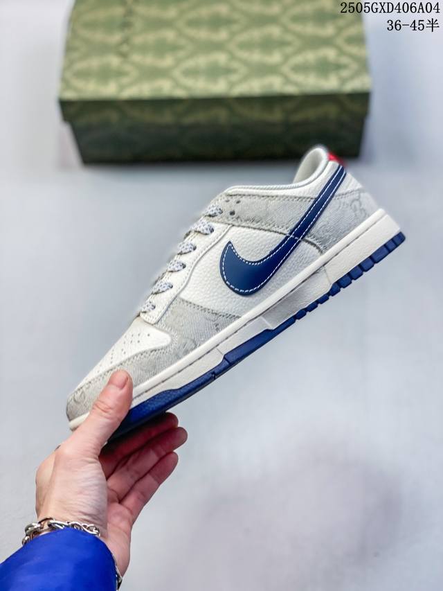 海外爆款限量发售!公司级 Nike Sb Dunk Low“古驰联名 织布蓝勾” 周年高端定制 低帮休闲板鞋 定制鞋盒 大厂纯原品质出货 超高清洁度 皮料切割干净无任何毛边 细节完美