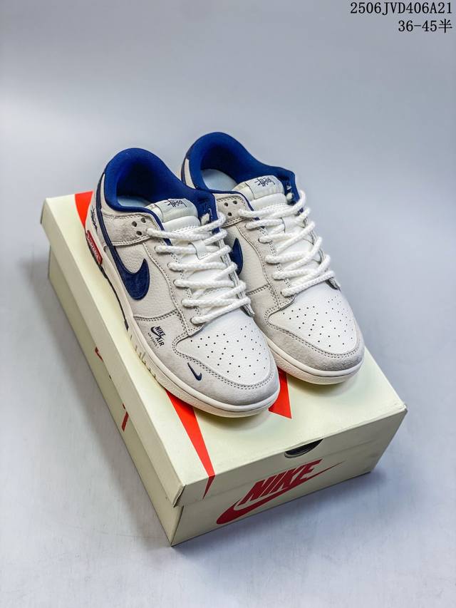 海外爆款限量发售!公司级 Nike Sb Dunk Low“Supremex斯图西三方联名 米白灰勾” 周年高端定制 低帮休闲板鞋 定制鞋盒 大厂纯原品质出货 超高清洁度 皮料切割干净无任何毛边 细节完美