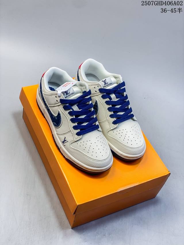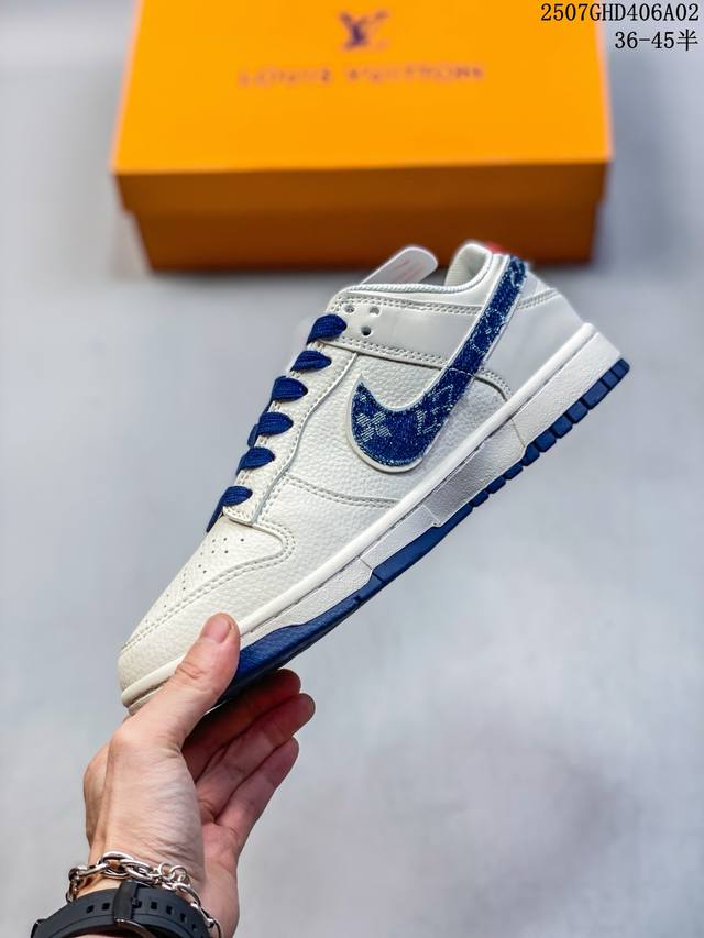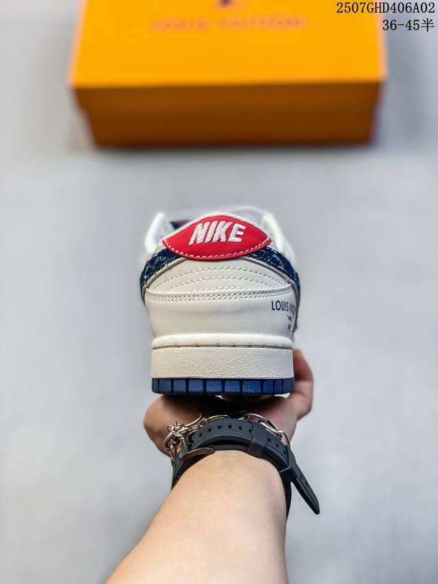 海外爆款限量发售!Nike Air Dunk Low 1“Lv联名 牛仔蓝红 ”经典牛仔蓝红搭配 满天星鞋带 海外潮流爆款 低帮 复古 减震 防滑 耐磨 篮球鞋 定制鞋盒 大厂纯原品质出货 超高清洁度 皮料切割干净无任何毛边 细节完美