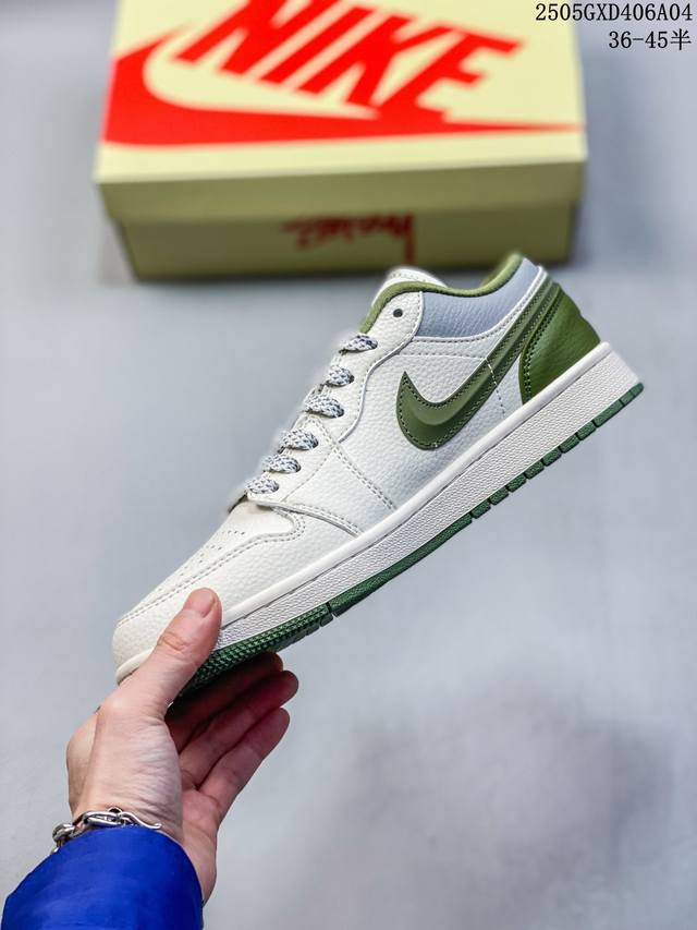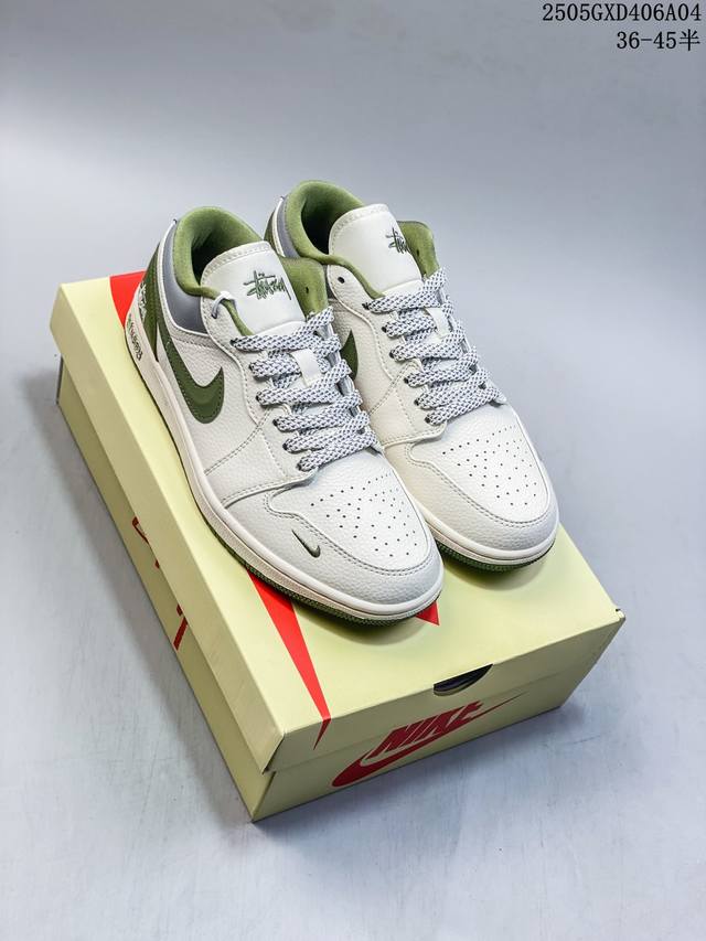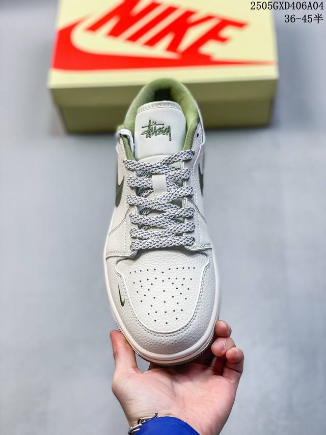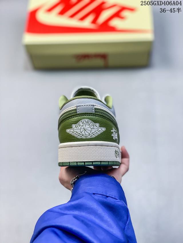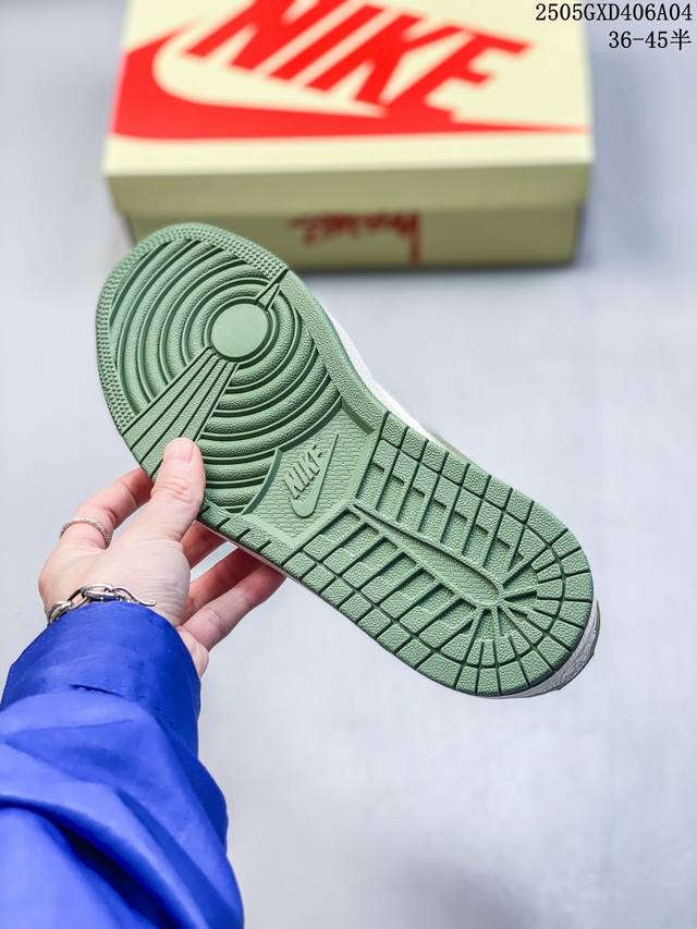 海外爆款限量发售!Nike Jordan Air Jordan 1“斯图西联名 米绿立体勾” 高端定制 低帮 复古 减震 防滑 耐磨 篮球鞋 定制鞋盒 大厂纯原品质出货 超高清洁度 皮料切割干净无任何毛边 细节完美