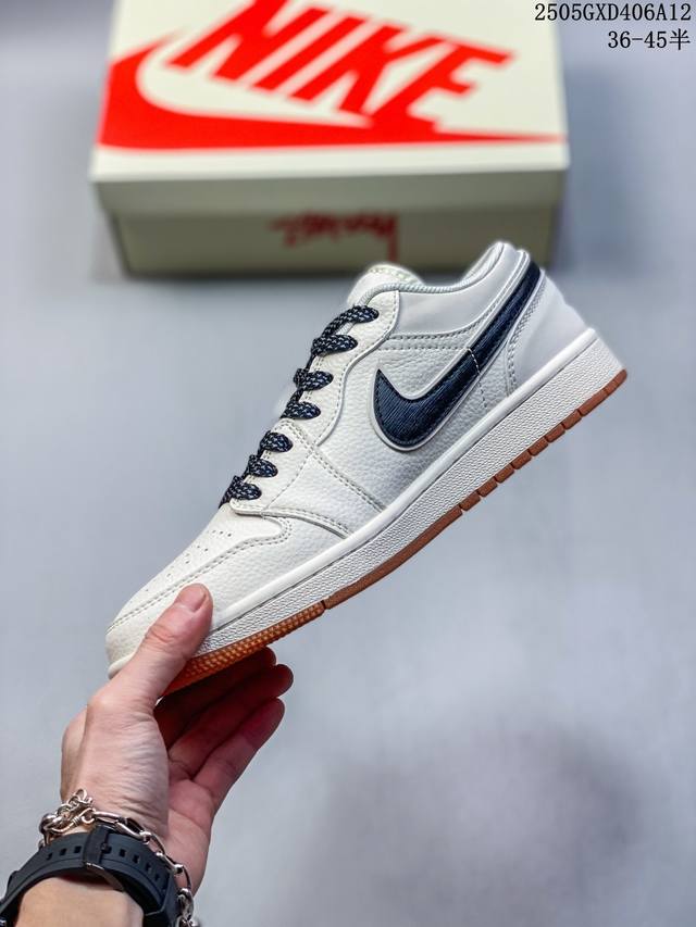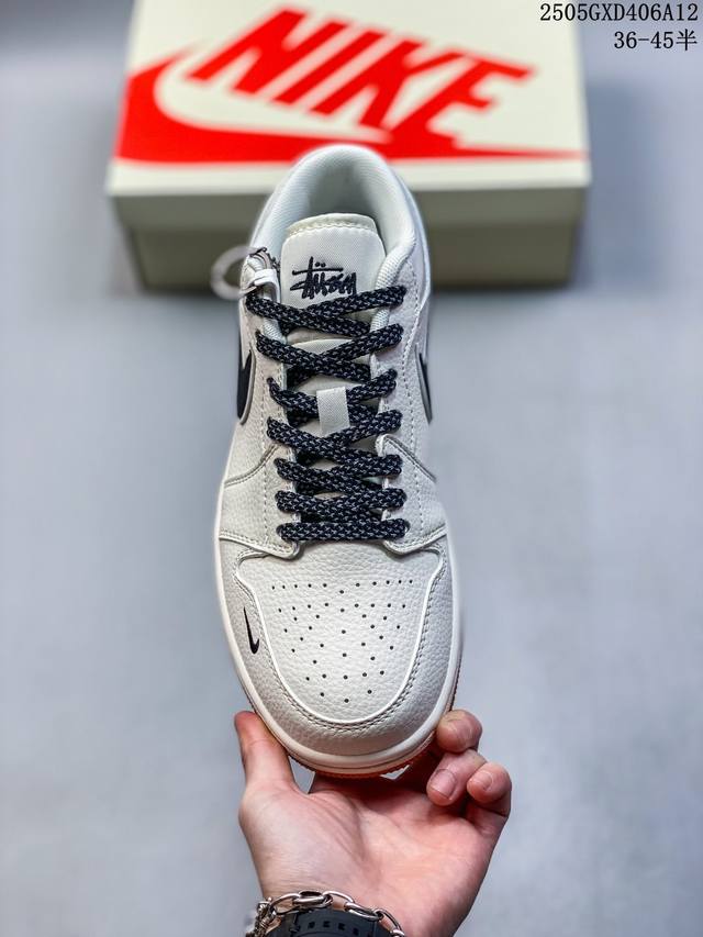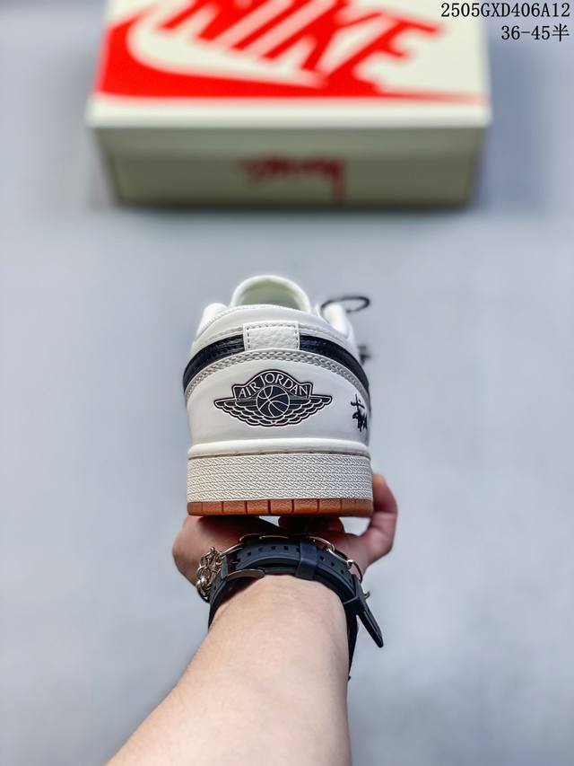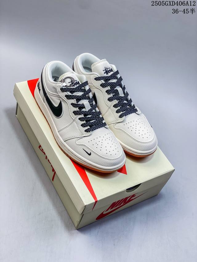 海外爆款限量发售!Nike Jordan Air Jordan 1“斯图西联名 黑勾生胶” 高端定制 低帮 复古 减震 防滑 耐磨 篮球鞋 定制鞋盒 大厂纯原品质出货 超高清洁度 皮料切割干净无任何毛边 细节完美