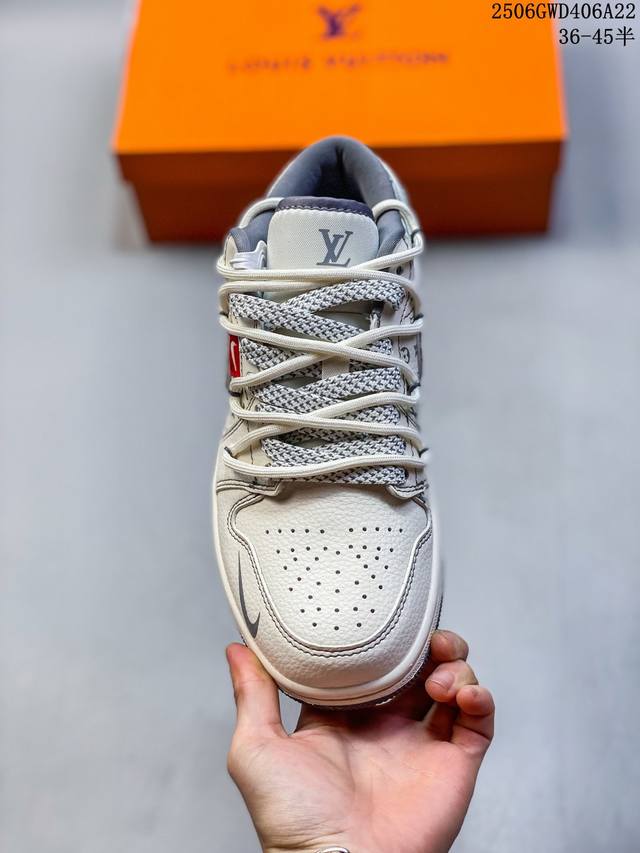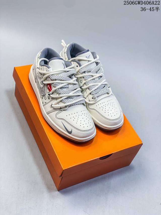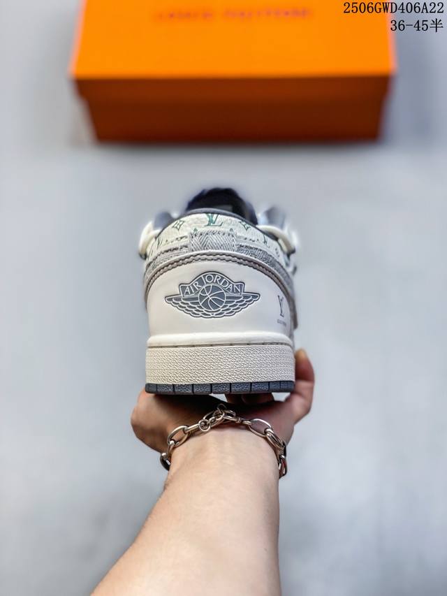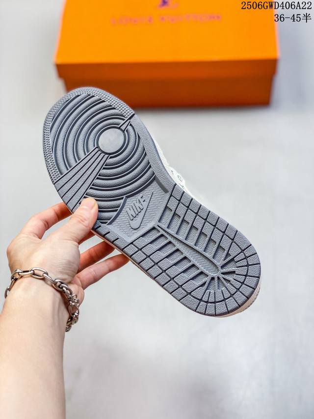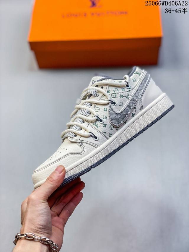 海外爆款限量发售!Nike Jordan Air Jordan 1“Lv联名 灰布勾抽绳” 高端定制 低帮 复古 减震 防滑 耐磨 篮球鞋 定制鞋盒 大厂纯原品质出货 超高清洁度 皮料切割干净无任何毛边 细节完美