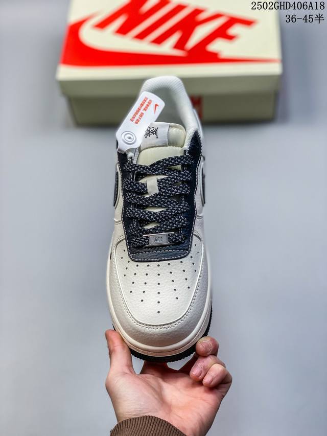 海外限量发售!公司级Nike Air Force 1 '07 Low “斯图西联名--米黑云母”空军一号 低帮 运动鞋 休闲鞋 折边针车 工艺难度大 原楦头原纸板 原装鞋盒 定制五金配件 内置全掌气垫 原厂鞋底