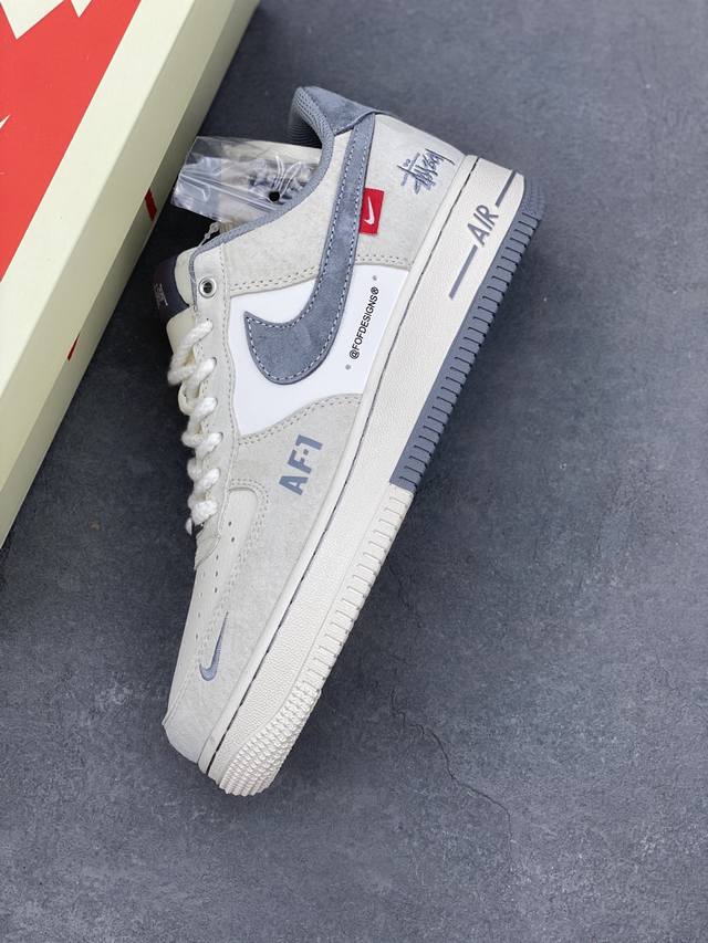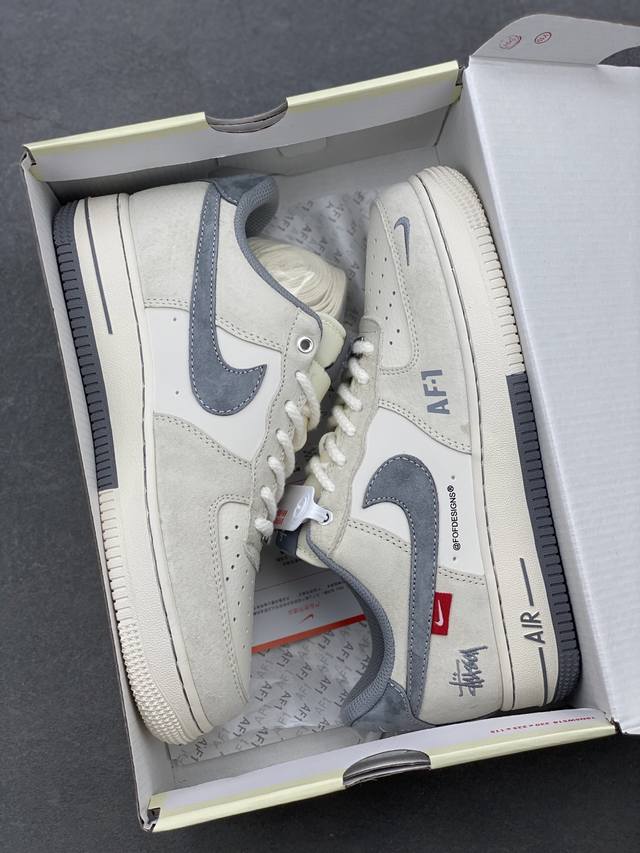 海外限量发售!公司级Nike Air Force 1 '07 Low “斯图西联名 双拼米灰”空军一号 低帮 运动鞋 休闲鞋 折边针车 工艺难度大 原楦头原纸板 原装鞋盒 定制五金配件 内置全掌气垫 原厂鞋底