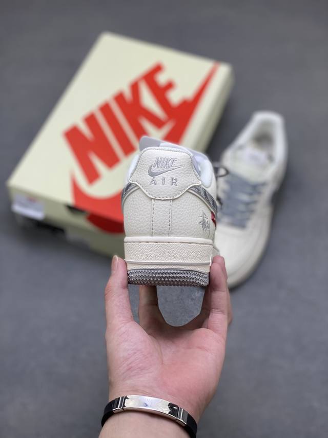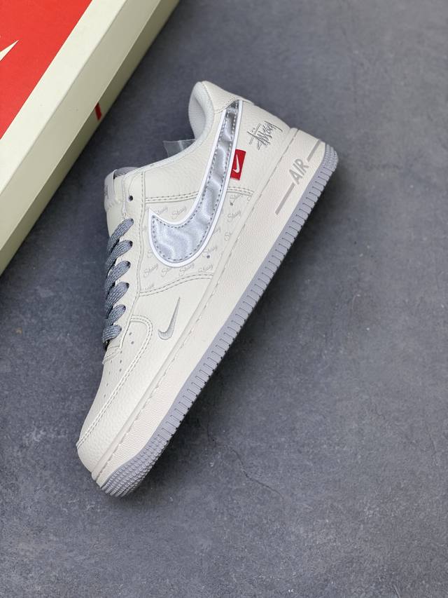 海外限量发售!公司级Nike Air Force 1 '07 Low “斯图西联名 灰银勾”空军一号 低帮 运动鞋 休闲鞋 折边针车 工艺难度大 原楦头原纸板 原装鞋盒 定制五金配件 内置全掌气垫 原厂鞋底
