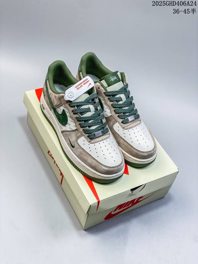 海外限量发售!公司级Nike Air Force 1 '07 Low “斯图西联名 米黑”空军一号 低帮 运动鞋 休闲鞋 折边针车 工艺难度大 原楦头原纸板 原装鞋盒 定制五金配件 内置全掌气垫 原厂鞋底