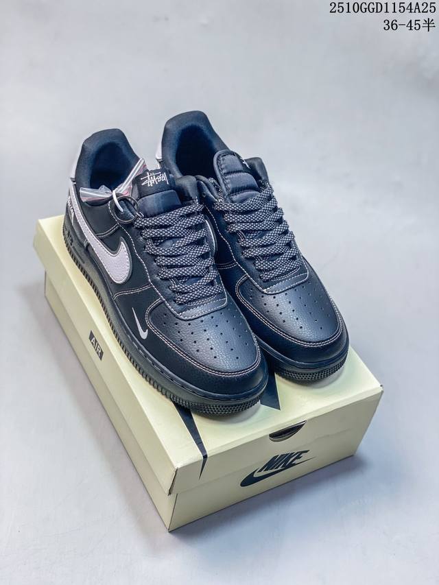 / 海外限量发售!公司级Nike Air Force 1 '07 Low “斯图西联名 黑白满天星”空军一号 低帮 运动鞋 休闲鞋 折边针车 工艺难度大 原楦头原纸