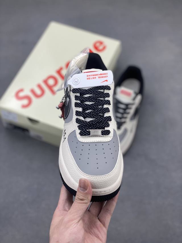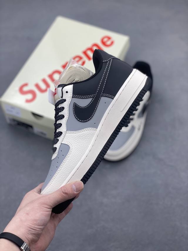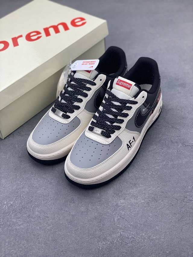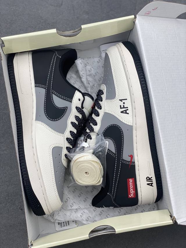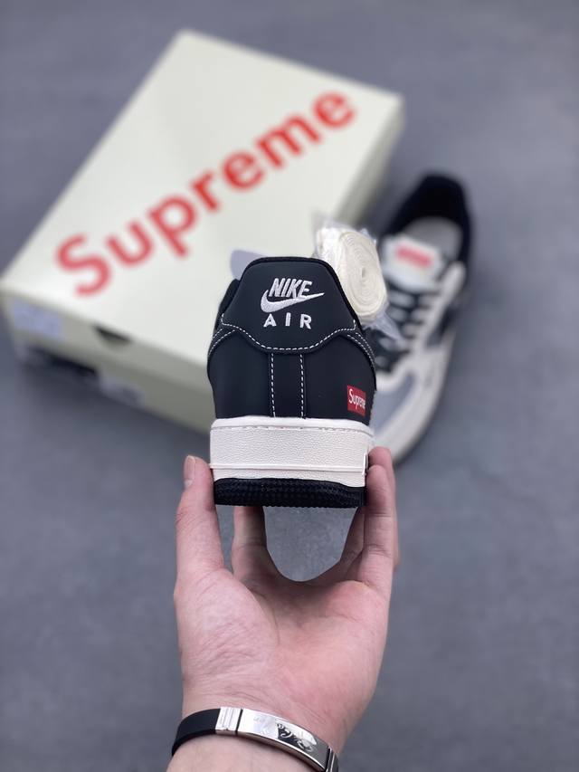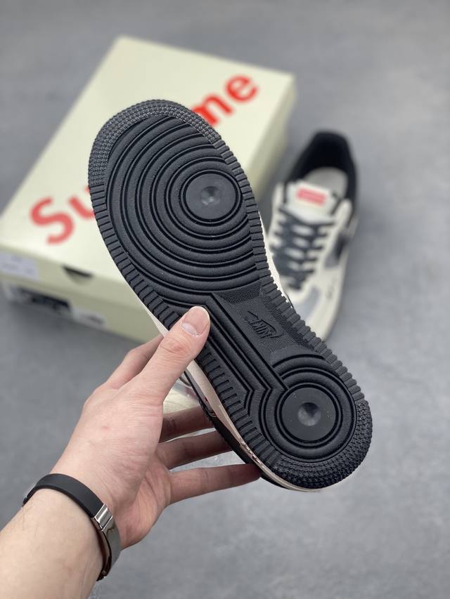 海外限量发售!公司级Nike Air Force 1 '07 Low “Supreme联名 米黑Af1”空军一号 低帮 运动鞋 休闲鞋 折边针车 工艺难度大 原