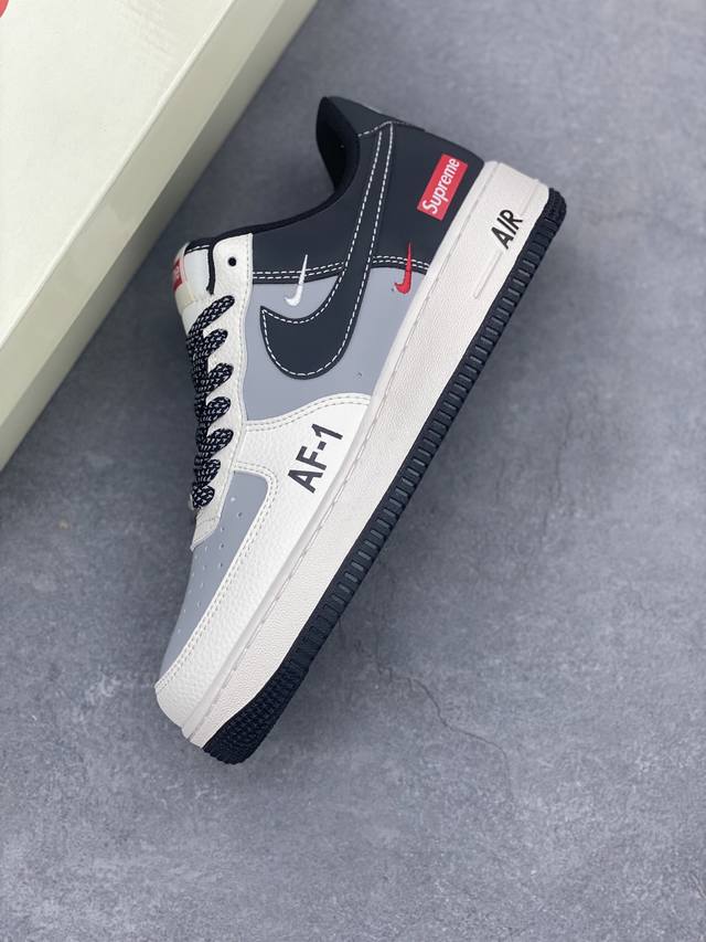 公司级Nike Air Force 1 ‘07 Low “Supreme冠军联名 米黑小三勾”空军一号 低帮 运动鞋 休闲鞋 折边针车 工艺难度大 原楦头原纸板