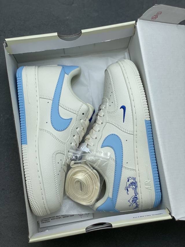海外限量发售!公司级Nike Air Force 1 '07 Low “米蓝浪花”空军一号 低帮 运动鞋 休闲鞋 折边针车 工艺难度大 原楦头原纸板 原装鞋盒 定制五金配件 内置全掌气垫 原厂鞋底