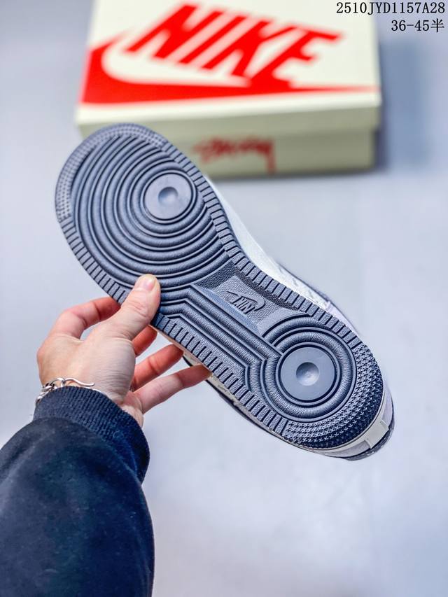 海外限量发售!公司级Nike Air Force 1 '07 Low “斯图西联名 米黑底”空军一号 低帮 运动鞋 休闲鞋 折边针车 工艺难度大...