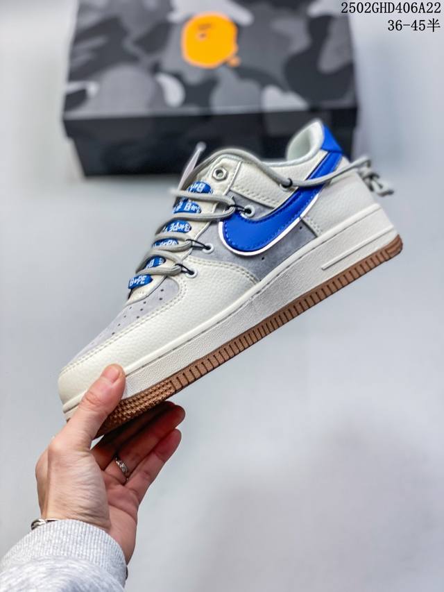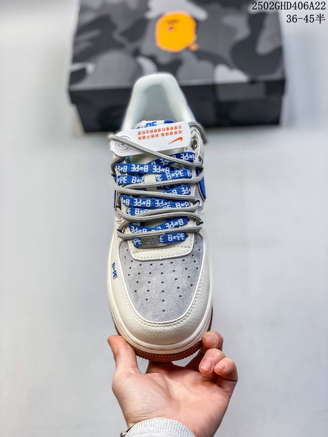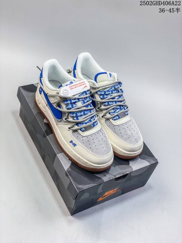海外限量发售!公司级Nike Air Force 1 '07 Low “Bape联名 米蓝生胶抽绳”空军一号 低帮 运动鞋 休闲鞋 折边针车 工艺难度大 原楦头原纸板 原装鞋盒 定制五金配件 内置全掌气垫 原厂鞋底