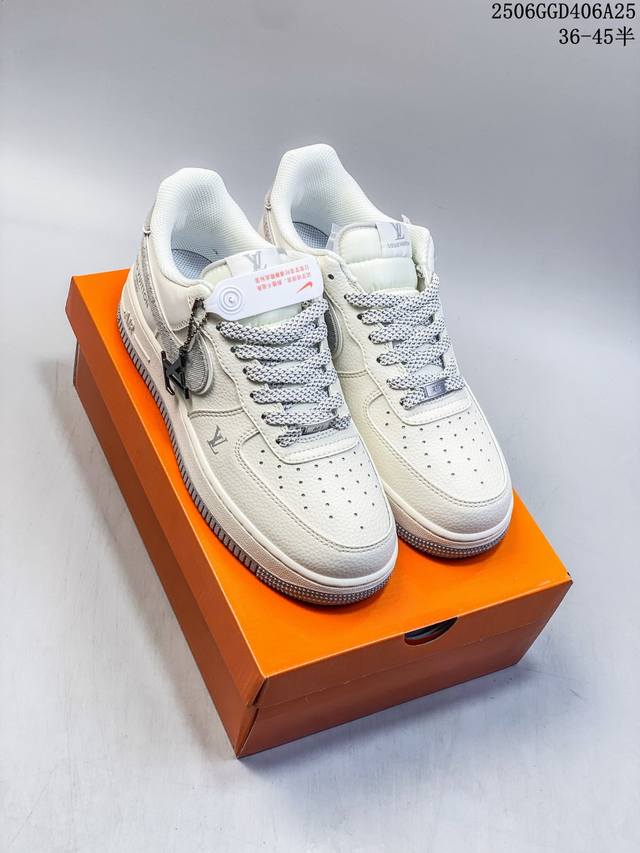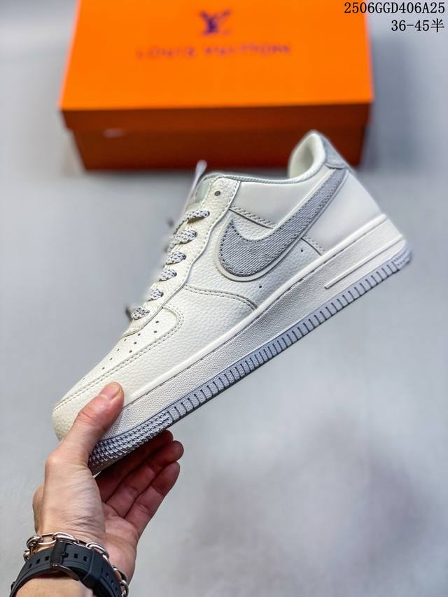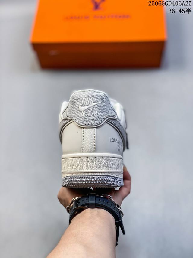 海外限量发售!公司级Nike Air Force 1 '07 Low “Lv联名 米灰牛仔勾”空军一号 低帮 运动鞋 休闲鞋 折边针车 工艺难度大 原楦头原纸板 原装鞋盒 定制五金配件 内置全掌气垫 原厂鞋底