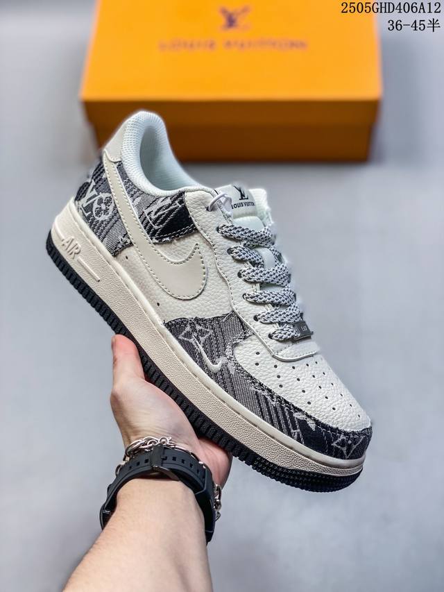 海外限量发售!公司级Nike Air Force 1 '07 Low “ Lv联名 黑花牛仔”空军一号 低帮 运动鞋 休闲鞋 折边针车 工艺难度大 原楦头原纸板 原装鞋盒 定制五金配件 内置全掌气垫 原厂鞋底