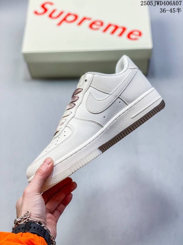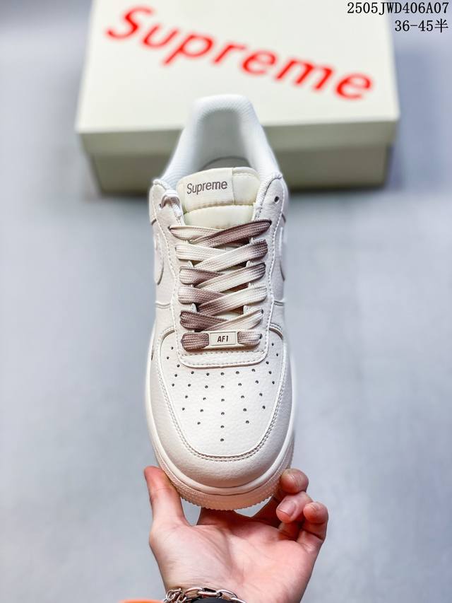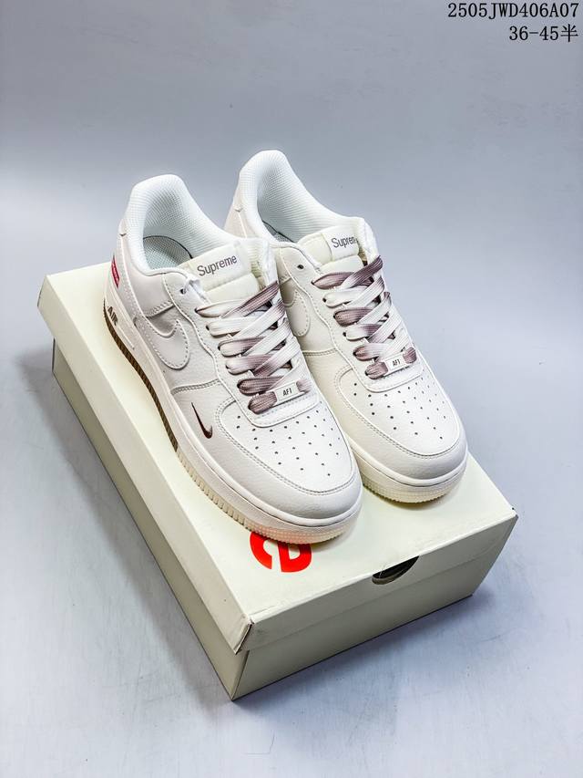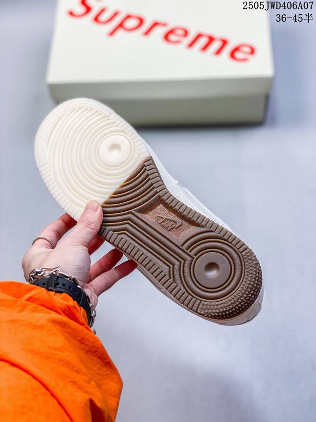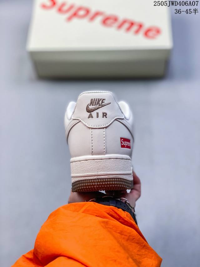 海外限量发售!公司级Nike Air Force 1 '07 Low “Supreme联名--米咖双拼”空军一号 低帮 运动鞋 休闲鞋 折边针车 工艺难度大 原楦头原纸板 原装鞋盒 定制五金配件 内置全掌气垫 原厂鞋底