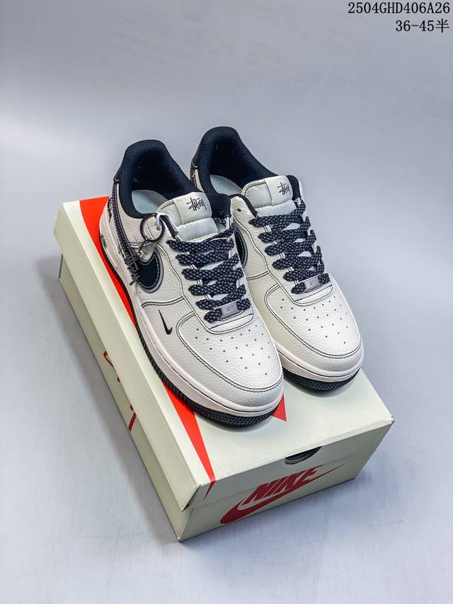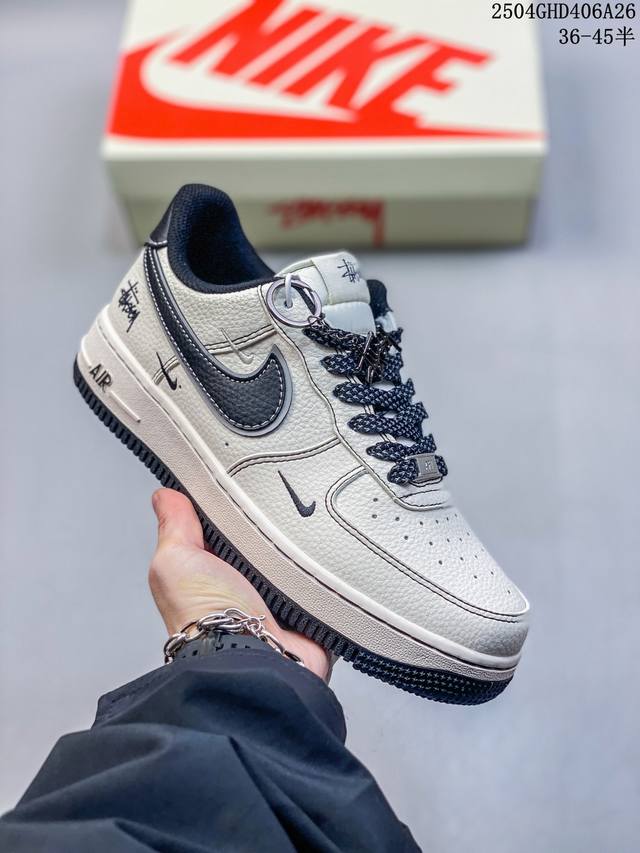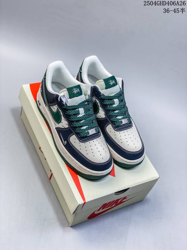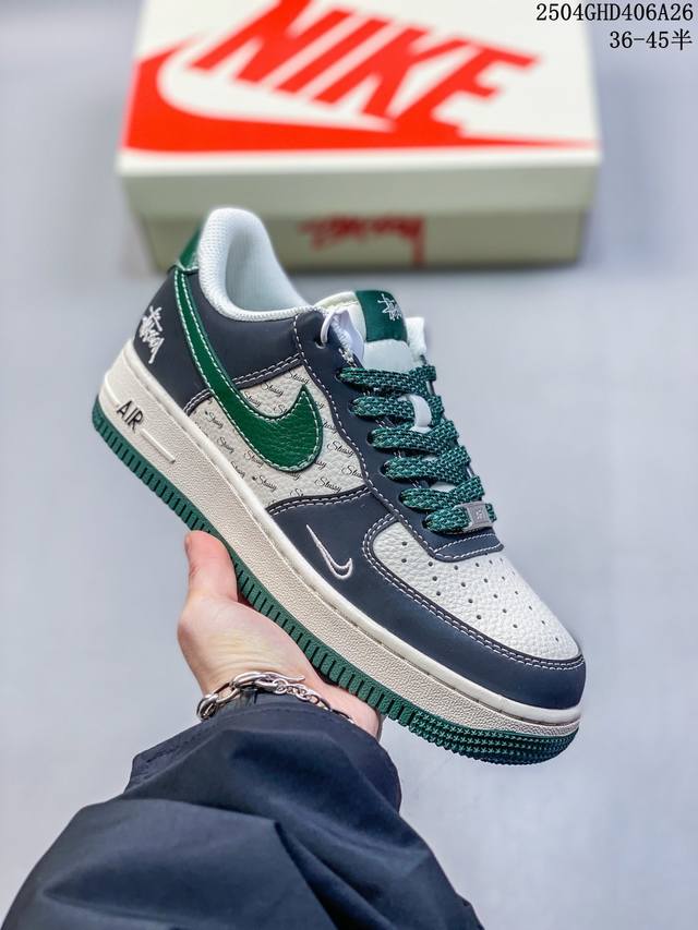 海外限量发售!公司级Nike Air Force 7 Low “斯图西联名 黑绿勾英文”空军一号 低帮 运动鞋 休闲鞋 折边针车 工艺难度大 原楦头原纸板 原装鞋盒 定制五金配件 内置全掌气垫 原厂鞋底