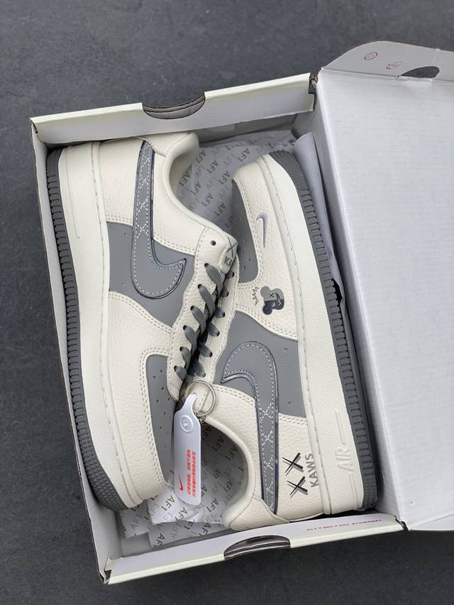 海外限量发售!公司级Nike Air Force 7 Low “Kaws联名 米灰暴力熊”空军一号 低帮 运动鞋 休闲鞋 折边针车 工艺难度大 原楦头原纸板 原装鞋盒 定制五金配件 内置全掌气垫 原厂鞋底