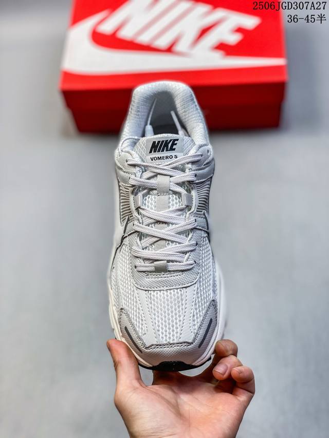 真标 耐克 Nike 耐克夏季 Zoom Vomero 5 运动鞋休闲训练跑步鞋。Nike Zoom Vomero 5 男女子运动鞋妥帖包覆足部,提供透气支撑效果。耐穿材料组合设计,助你从容应对日常挑战。柔软泡绵和 Zoom Air 缓震配置,缔造轻盈舒适的顺畅迈步体验。网眼布搭配优质覆面,透气耐穿,Cushlon 泡绵搭配 Zoom Air 缓震配置,塑就回弹缓震的顺畅迈步体验,外底融入橡胶贴片,铸就非凡抓地力。