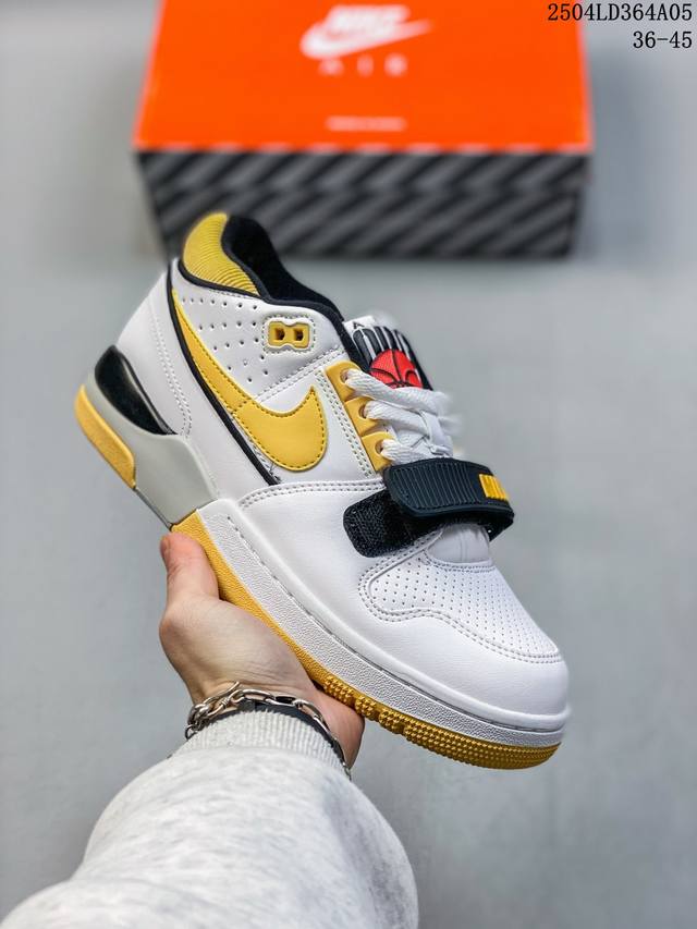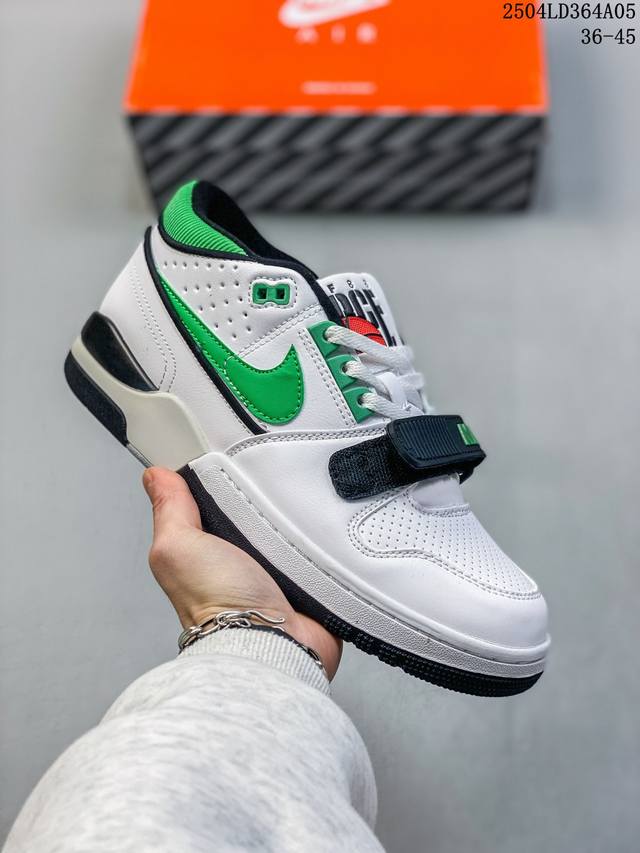Billie Eilish X Nike Alpha Force 88 碧梨 X Nike 新联名款篮球鞋 男女士运动鞋。此款式在 Air Jordan 2 与 Air Jordan 3 的过渡期间,迈克尔乔丹曾在1988年赛季初的比赛中穿着Air Alpha Force,并穿着它拍摄了同年日历海报。整体采用低帮造型示人,白色皮革为底,黑灰点缀细节,营造熟悉的芝加哥气氛。最大亮点还是鞋面前端的魔术贴设计,提供更为牢靠的鞋面包裹。中底方面内嵌 Air Sole 气垫单元,外底可以看出Air