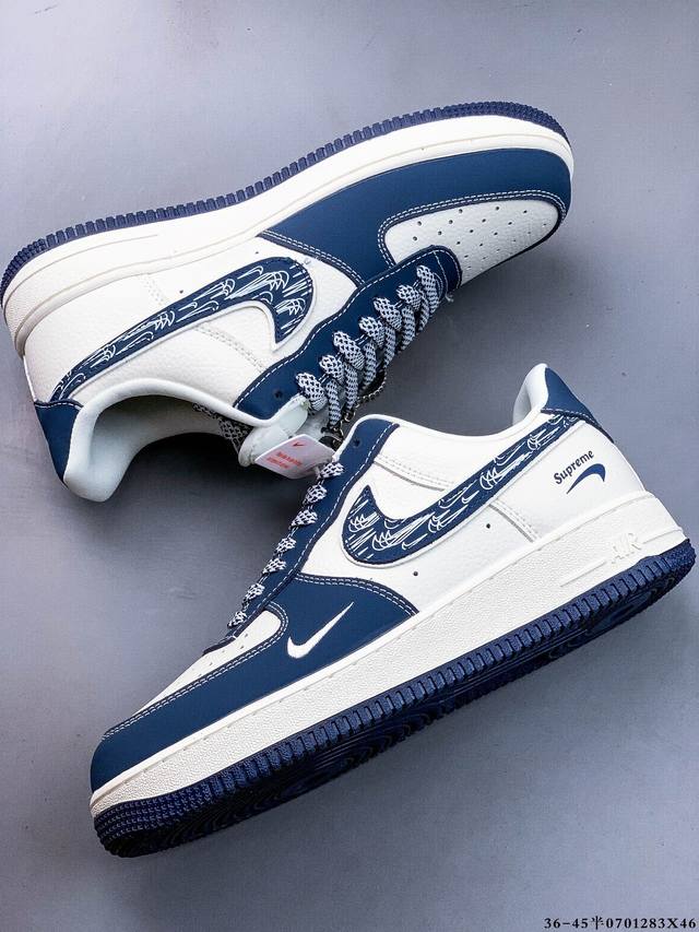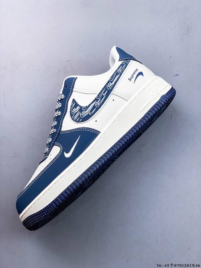 Nike Air Force 1 Low 07 X Stussy 白蓝小勾 原楦头原纸板 打造纯正低帮空军版型 专注外贸渠道 全掌内置蜂窝气垫 原盒配件 原厂中