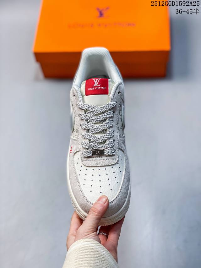 经典碰撞,奢潮新章!当Nike Air Force 1的街头基因遇上Louis Vuitton的高定奢韵,这双联名款球鞋便成了潮流与奢华的完美融合体。米白麂皮与压纹Monogram皮革拼接出细腻层次,镭射炫彩Swoosh Logo在光线下折射出幻彩光晕,红标Lv字母与鞋侧“Louis Vuitton”字样形成视觉点睛,黑白撞色中底则延续了Af1的经典轮廓。每一处细节都揉合了街头的随性与高奢的精致,既是对经典鞋型的全新演绎,也是奢潮跨界的标志性作品,上脚即刻成为造型焦点,让你在潮流棋局中站稳独特步调。 Dd