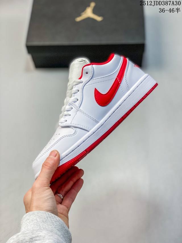 耐克 乔丹Air Jordan 1 Low Aj1 乔1 乔丹1代Aj1 低帮复古文化休闲运动篮球鞋。该鞋款从 1985 年元年款汲取设计灵感,焕新演绎简约经典外观,让人感到熟悉的同时又颇具新意。缝线细节搭配后跟刺绣 Wings 标志,彰显 Jordan 品牌与众不同的专属格调。皮革鞋面,塑就出众结构感与耐穿性。鞋底加入 Nike Air 缓震技术,造就轻盈缓震脚感,外底融入橡胶,铸就非凡抓地力,塑就日常佳选,后跟饰有 Wings 标志,鞋头打孔设计,泡绵中底。 Ddd 码数:36-46含半码 Ddd 1