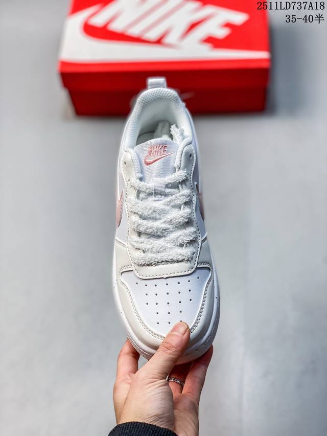 耐克 Nike 女子运动鞋 Court Borough Low 小空军低帮板鞋。1.其皮革材质的鞋面结合网眼鞋舌,在出众外观与质感的同时提供稳固支撑,并且提升透气性。弹力鞋垫,耐穿舒适,增加缓震性能。2.耐克Court也是耐克性价比比较高的鞋款,Court鞋型很像Aj1Low,鞋底很像Af1,当然还是有差别的,毕竟产品用料,定位都不一样,性价比来说还是不错的选择。3.这款鞋子加上外底采用扭转点设计,流畅启停,灵活抓地;鞋身有着耐克Logo标志,展现品牌价值。 DDD 类型:女鞋 DDD 货号:Dv5456