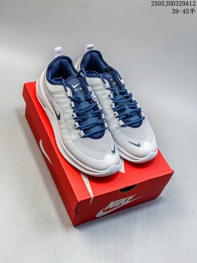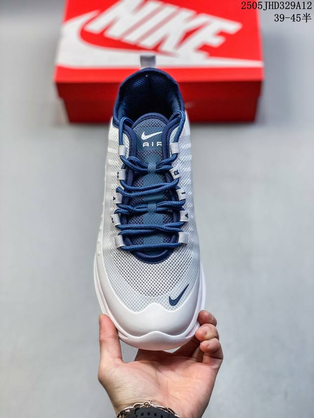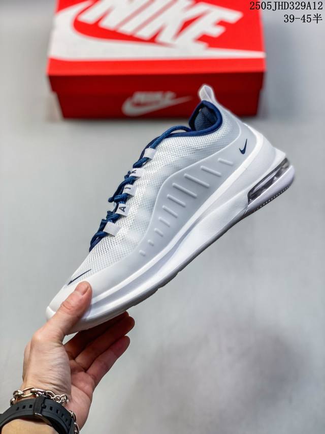 耐克 Nike Air Max Axis 男女子运动鞋气垫缓震轻便休闲运动跑步网面透气舒适日常慢跑鞋,时尚的无缝覆面和透气网眼布演绎时尚外观。流线型中底和独特后跟设计,以醒目新颖方式传达 Max Air 的缓震性能。外露 Max Air 缓震配置起初专为提高跑步表现打造,缔造舒适穿着体验。波浪形无缝覆面颂扬 98 款,织带鞋眼呼应 95 款设计,侧面的 Swoosh 标志再现 97 款特色,多层无缝覆面塑就简洁利落外观,打造微妙的分层效果,鞋面采用透气网眼设计,增强层次感和透气性,泡棉中底,兼具轻盈舒适感