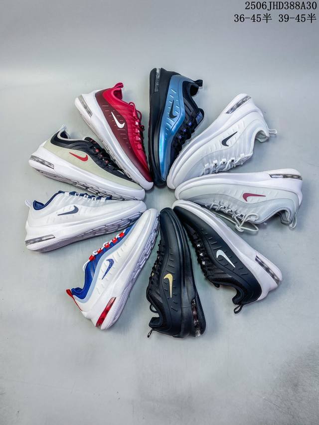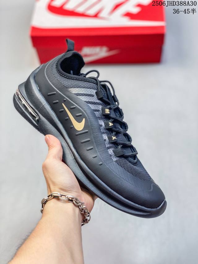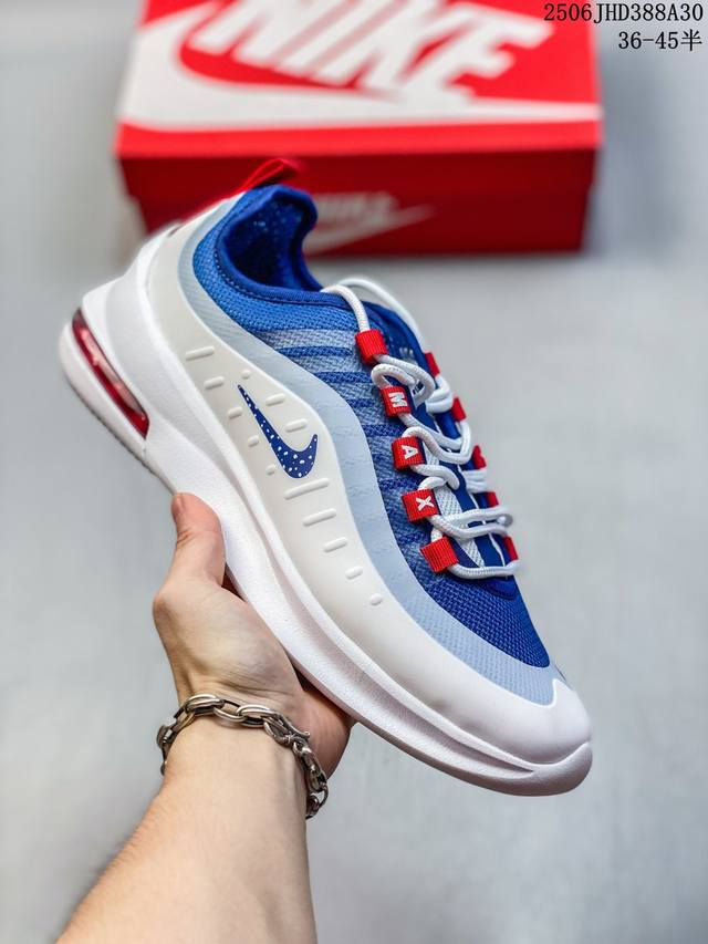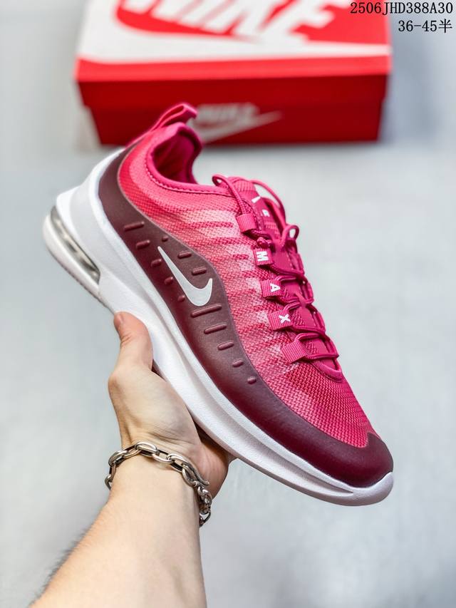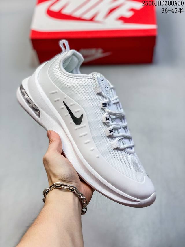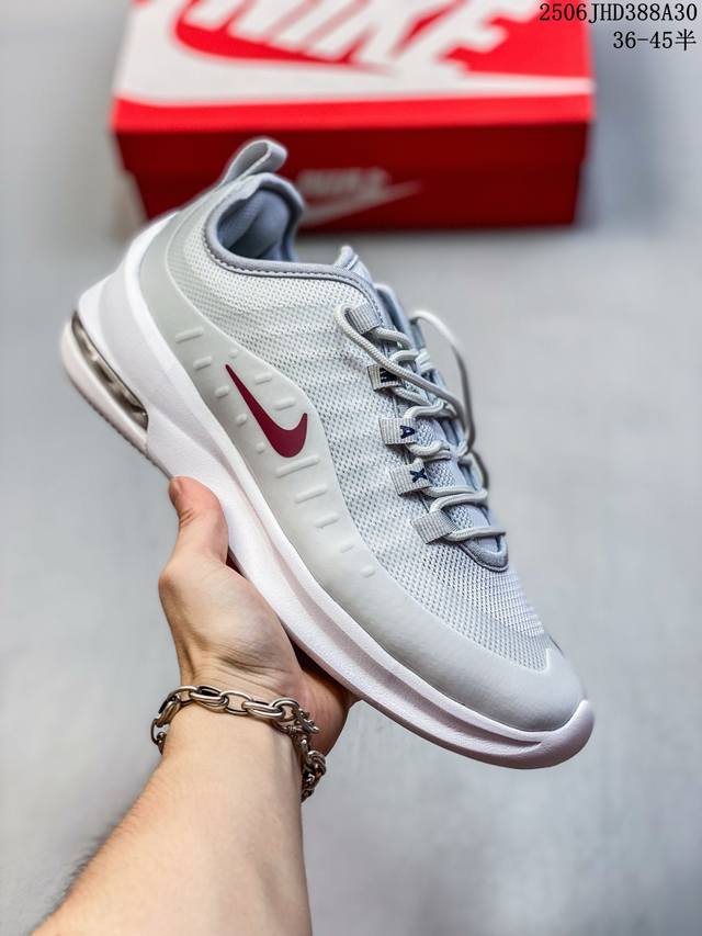 耐克 Nike Air Max Axis 男女子运动鞋气垫缓震轻便休闲运动跑步网面透气舒适日常慢跑鞋,时尚的无缝覆面和透气网眼布演绎时尚外观。流线型中底和独特后跟设计,以醒目新颖方式传达 Max Air 的缓震性能。外露 Max Air 缓震配置起初专为提高跑步表现打造,缔造舒适穿着体验。波浪形无缝覆面颂扬 98 款,织带鞋眼呼应 95 款设计,侧面的 Swoosh 标志再现 97 款特色,多层无缝覆面塑就简洁利落外观,打造微妙的分层效果,鞋面采用透气网眼设计,增强层次感和透气性,泡棉中底,兼具轻盈舒适感
